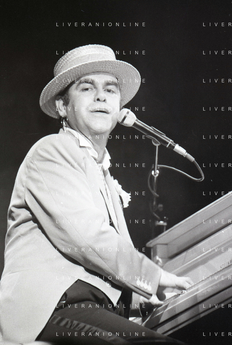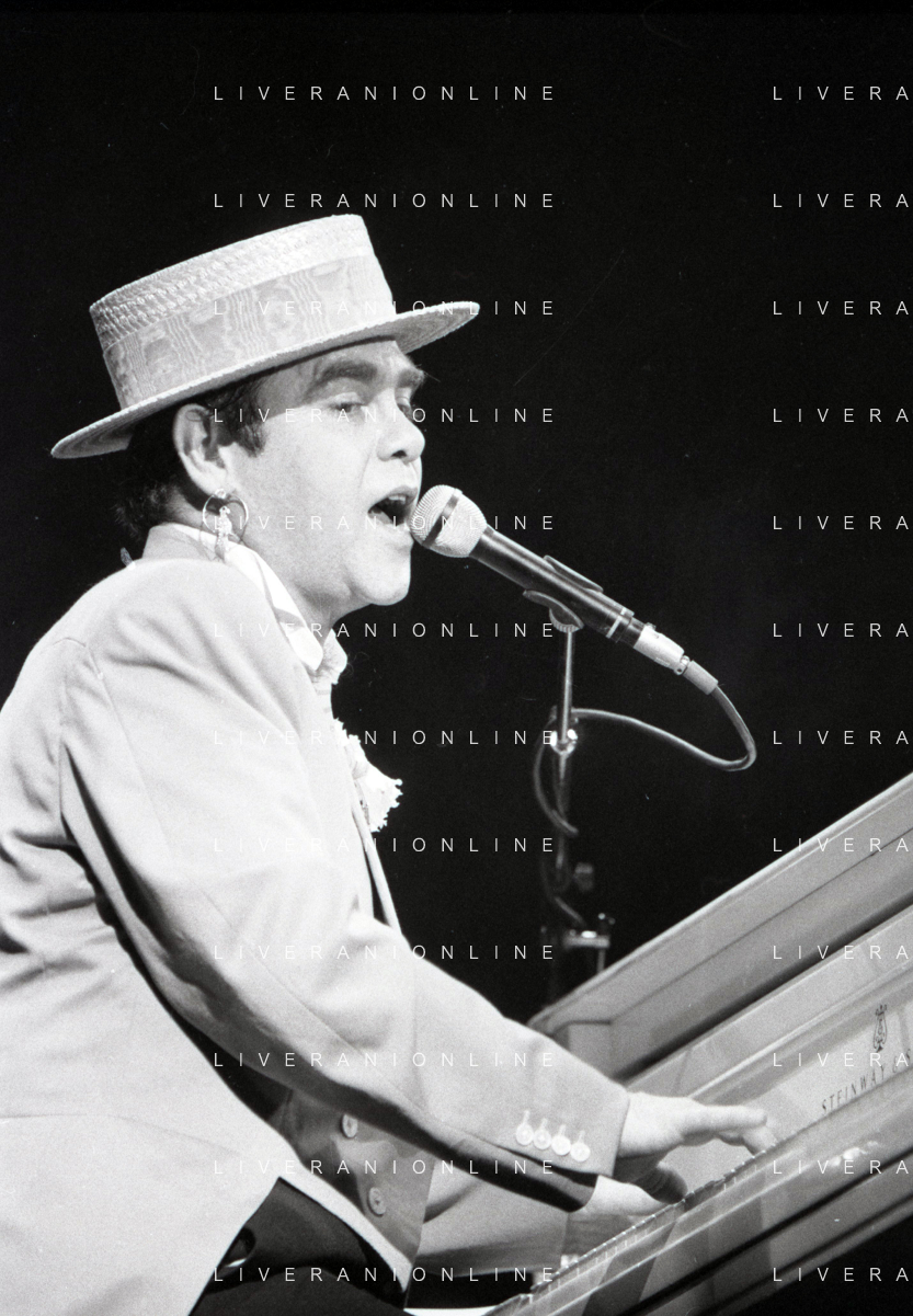 NEG-RETROSPETTIVA ELTON JOHN CANTANTE NELLA FOTO ELTON JOHN NELL'ANNO 1984 AG ALDO LIVERANI SAS