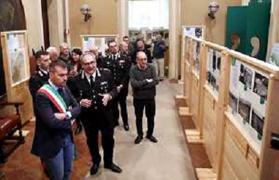 IMOLA 02 12 2024 presso il Palazzo Comunale, la mostra fotografica ‘Gli uomini che piantavano alberi’, realizzata dal Comando Carabinieri Forestale nella ricorrenza dei 200 anni dalla fondazione dell’Amministrazione Forestale del Regno di Sardegna, antenata del Corpo Forestale dello Stato transitato dal 2017 nel Comando Unita’ Forestali, Ambientali e Agroalimentari dell’Arma dei Carabinieri. Alla cerimonia di inaugurazione hanno preso parte il Sindaco Marco Panieri, il Colonnello Aldo Terzi, comandante del Gruppo Carabinieri Forestale di Bologna-Ferrara e curatore della mostra insieme al Prof. Pierangelo Bellettini, il Comandante della Compagnia Carabinieri di Imola, Capitano Domenico Lavigna, e il Comandante del Nucleo Carabinieri Forestale di Imola Maresciallo Benito Follo. Presenti inoltre il Vicesindaco Fabrizio Castellari, líAssessora allíAmbiente Elisa Spada, líAssessore al Centro Storico Pierangelo Raffini oltre ai rappresentanti delle Associazioni CAI, Coldiretti, Istituti scolastici di Imola e altri.NELLA FOTO COLONELLO ALDO TERZI E SINDACO MARCO PANIERI- ©SANNA - AGENZIA ALDO LIVERANI SAS