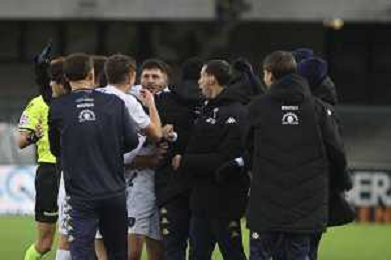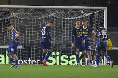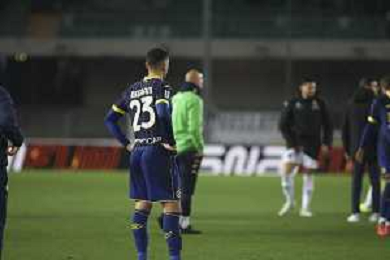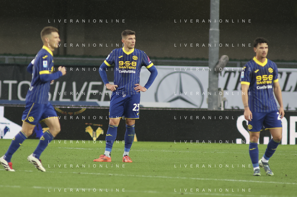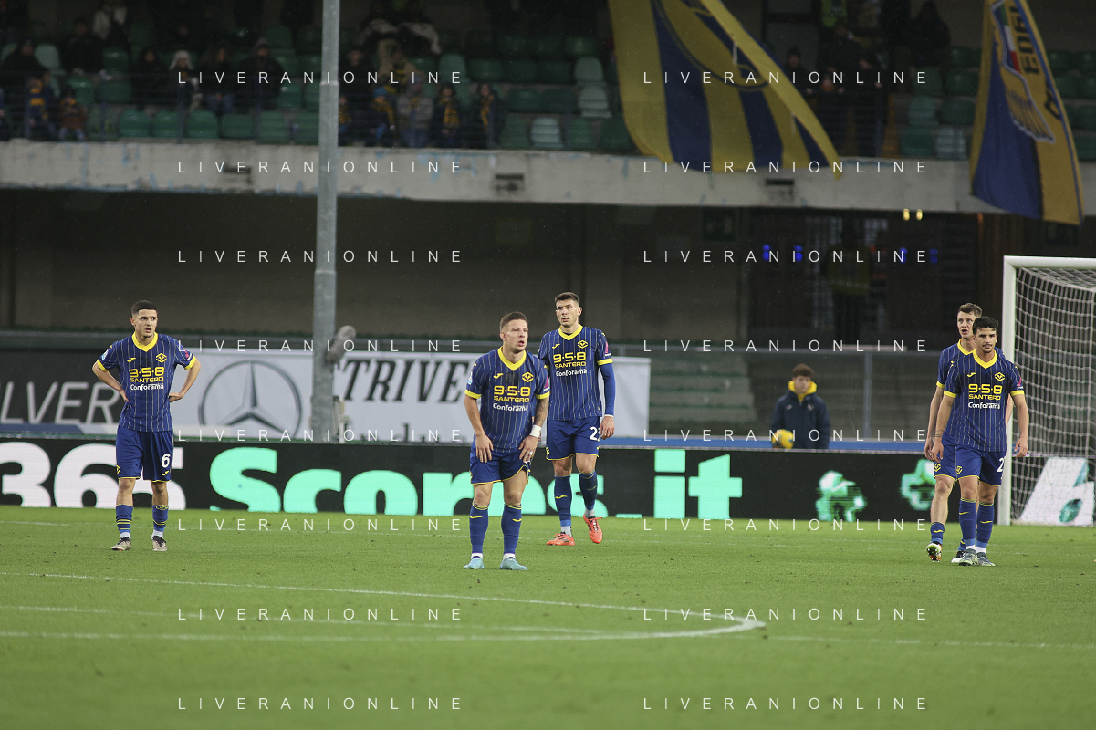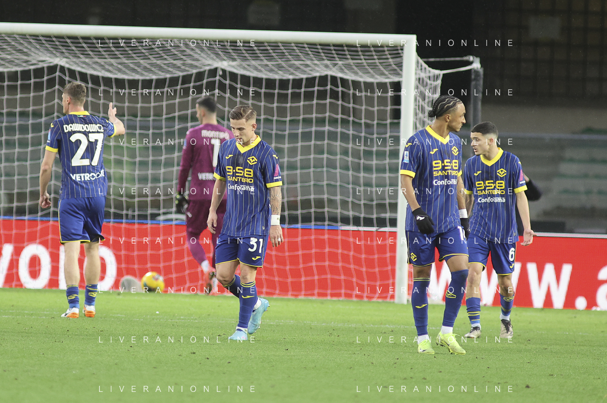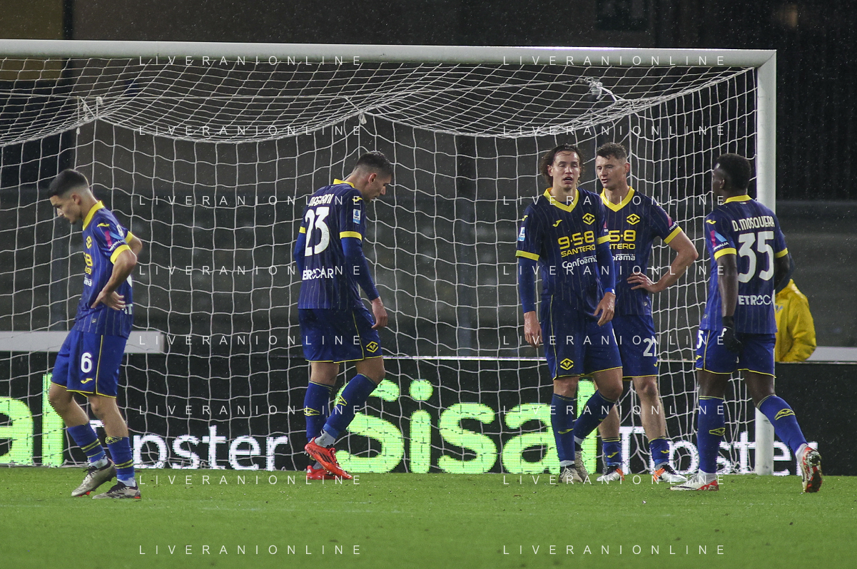 Hellas Verona players expresses disappointment during Hellas Verona FC vs Empoli FC, 15° Serie A Enilive 2024-25 game at Marcantonio Bentegodi stadium in Verona (VR), Italy, on Dicember 08, 2024. (Photo by Davide Casentini) - AGENZIA ALDO LIVERANI SAS