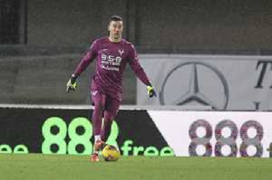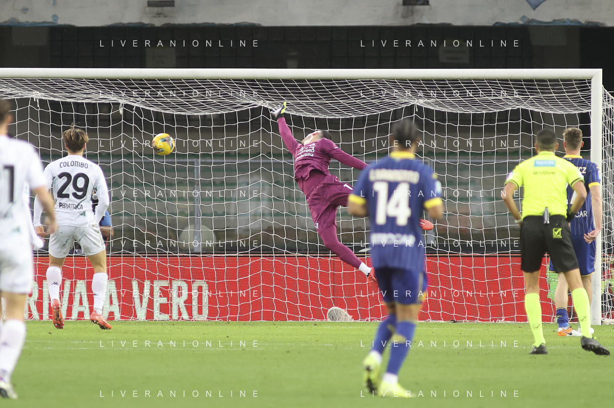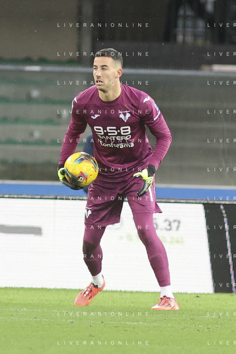 Lorenzo Montipo’ of Hellas Verona FC play the ball during Hellas Verona FC vs Empoli FC, 15° Serie A Enilive 2024-25 game at Marcantonio Bentegodi stadium in Verona (VR), Italy, on Dicember 08, 2024. (Photo by Davide Casentini) - AGENZIA ALDO LIVERANI SAS