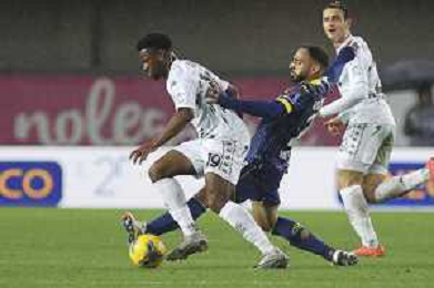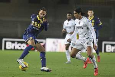 Jackson Tchatchoua of Hellas Verona FC cross the ball during Hellas Verona FC vs Empoli FC, 15° Serie A Enilive 2024-25 game at Marcantonio Bentegodi stadium in Verona (VR), Italy, on Dicember 08, 2024. (Photo by Davide Casentini)- AGENZIA ALDO LIVERANI SAS
