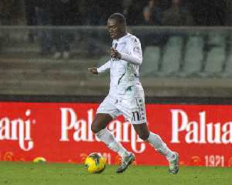 Emmanuel Gyasi of Empoli FC play the ball during Hellas Verona FC vs Empoli FC, 15° Serie A Enilive 2024-25 game at Marcantonio Bentegodi stadium in Verona (VR), Italy, on Dicember 08, 2024. (Photo by Davide Casentini)- AGENZIA ALDO LIVERANI SAS