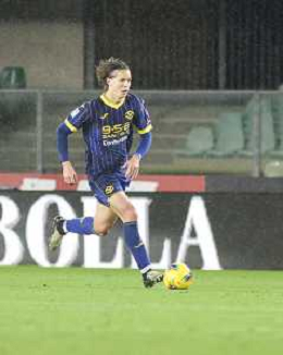 Daniele Ghilardi of Hellas Verona FC run during Hellas Verona FC vs Empoli FC, 15° Serie A Enilive 2024-25 game at Marcantonio Bentegodi stadium in Verona (VR), Italy, on Dicember 08, 2024. (Photo by Davide Casentini)- AGENZIA ALDO LIVERANI SAS
