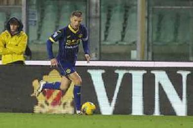 Darko Lazovic of Hellas Verona FC play the ball during Hellas Verona FC vs Empoli FC, 15° Serie A Enilive 2024-25 game at Marcantonio Bentegodi stadium in Verona (VR), Italy, on Dicember 08, 2024. (Photo by Davide Casentini)- AGENZIA ALDO LIVERANI SAS