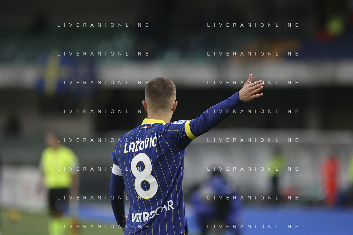 Darko Lazovic of Hellas Verona FC gestures during Hellas Verona FC vs Empoli FC, 15° Serie A Enilive 2024-25 game at Marcantonio Bentegodi stadium in Verona (VR), Italy, on Dicember 08, 2024. (Photo by Davide Casentini) - AGENZIA ALDO LIVERANI SAS