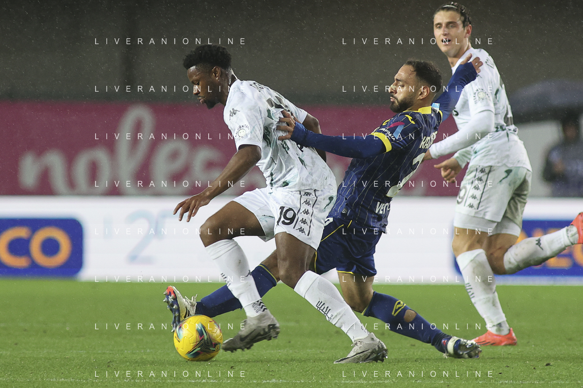 Jackson Tchatchoua of Hellas Verona FC play the ball during Hellas Verona FC vs Empoli FC, 15° Serie A Enilive 2024-25 game at Marcantonio Bentegodi stadium in Verona (VR), Italy, on Dicember 08, 2024. (Photo by Davide Casentini)- AGENZIA ALDO LIVERANI SAS