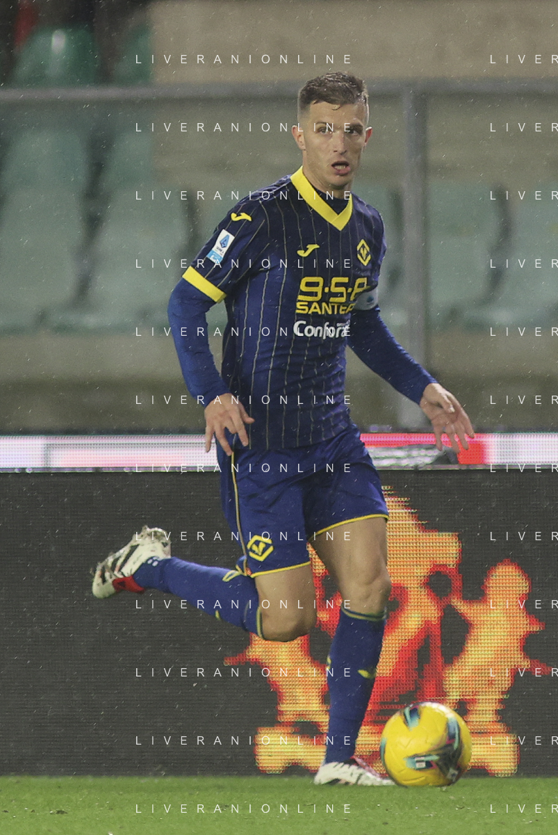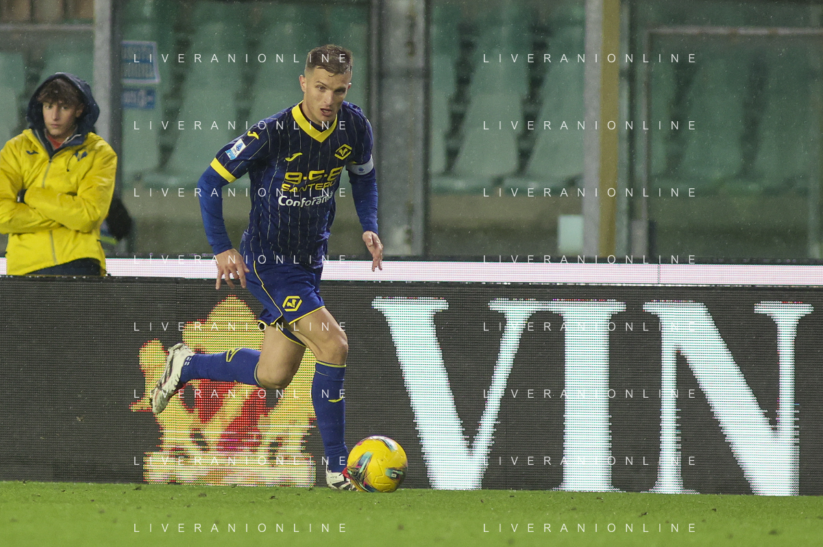 Domagoj Bradaric of Hellas Verona FC play the ball during Hellas Verona FC vs Empoli FC, 15° Serie A Enilive 2024-25 game at Marcantonio Bentegodi stadium in Verona (VR), Italy, on Dicember 08, 2024. (Photo by Davide Casentini) - AGENZIA ALDO LIVERANI SAS