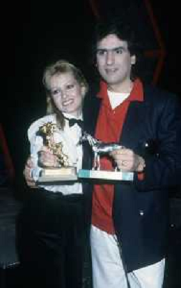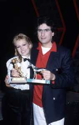 DIAP-RETROSPETTIVA TIZIANA RIVALE CANTANTE NELLA FOTO TIZIANA RIVALE CON TOTO COTUGNO A SANREMO NELL'ANNO 1983 AG ALDO LIVERANI SAS