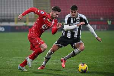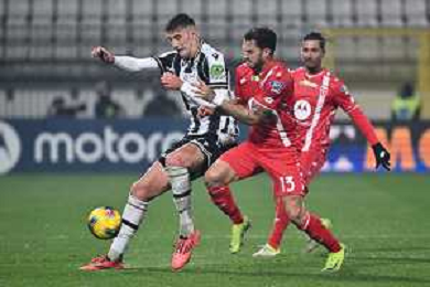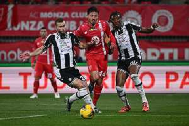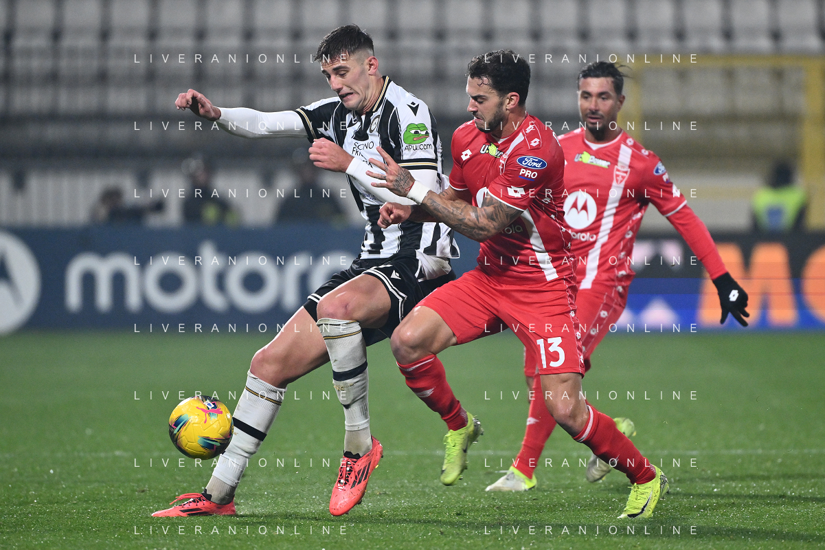 TVRG Monza vs Udinese nella foto Andrea Carboni (Monza) tra Jesper Karlstrom (Udinese) SX e Kingsley Ehizibue (Udinese) DX Monza 09-12-2024 U-Power Stadium Campionato Serie A Enilive - 15a giornata foto Roberto Garavaglia/Agenzia Aldo Liverani sas- AGENZIA ALDO LIVERANI SAS
