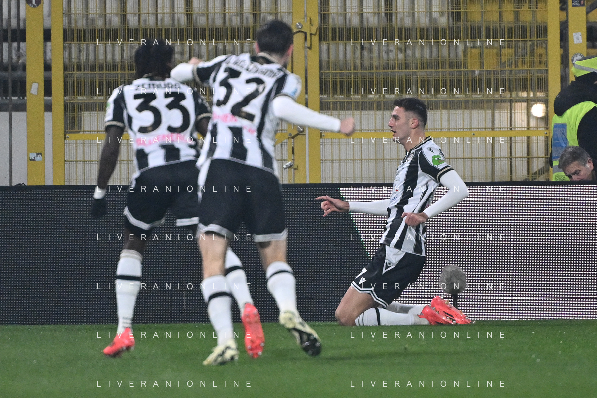 TVRG Monza vs Udinese nella foto Lorenzo Lucca (Udinese), al centro, esultanza dopo il gol dell'1 a 0 Monza 09-12-2024 U-Power Stadium Campionato Serie A Enilive - 15a giornata foto Roberto Garavaglia/Agenzia Aldo Liverani sas- AGENZIA ALDO LIVERANI SAS