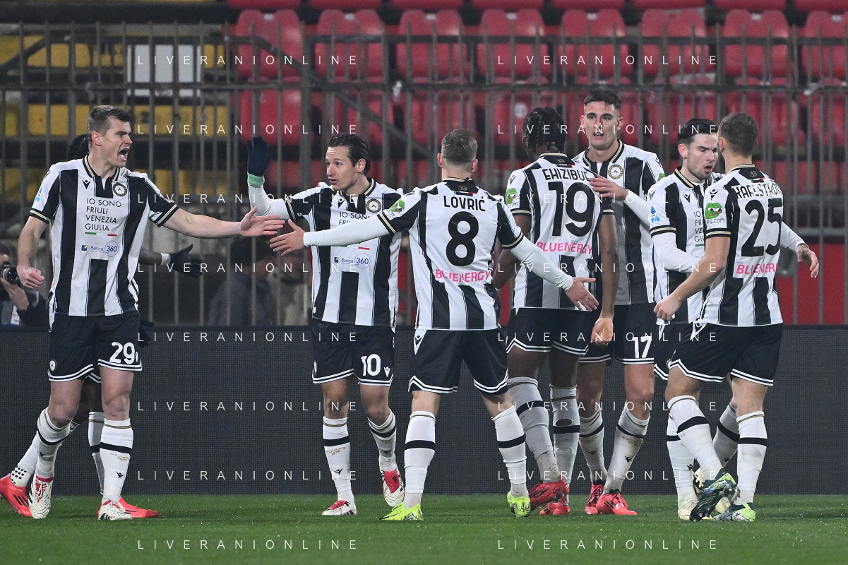 TVRG Monza vs Udinese nella foto esultanza Udinese dopo il gol dell'1 a 0 Lorenzo Lucca Monza 09-12-2024 U-Power Stadium Campionato Serie A Enilive - 15a giornata foto Roberto Garavaglia/Agenzia Aldo Liverani sas- AGENZIA ALDO LIVERANI SAS