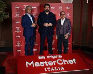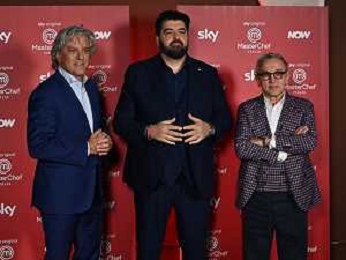 TVRG Photocall Masterchef nella foto da SX Giorgio Locatelli, Antonino Cannavacciuolo e Bruno Barbieri Milano 10-12-2024 Photocall in occasione della conferenza stampa di presentazione della nuova edizione di Masterchef foto Roberto Garavaglia/Agenzia Aldo Liverani sas