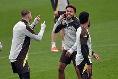 TVAF-Torino 10.12.2024 Continassa © Alessandro Falzone/Agenzia Aldo Liverani Allenamento Juventus Rifinitura partita Champions League Juventus vs Manchester City Nella foto: Douglas Luiz-Savona-mckennie