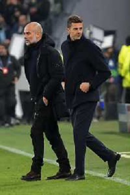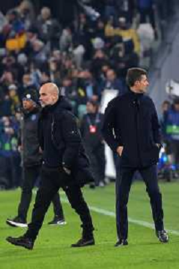 Torino 11.12.2024 Allianz Stadium ©Alessandro Falzone/Agenzia Aldo Liverani Juventus vs Manchester City Uefa Champions League 2024/2025 6a giornata Nella foto: Thiago Motta e Josep Guardiola