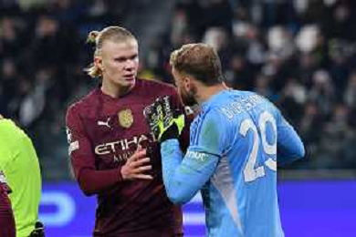 Torino 11.12.2024 Allianz Stadium ©Manuela Viganti/Agenzia Aldo Liverani Juventus vs Manchester City Uefa Champions League 2024/2025 6a giornata Nella foto: erling haaland e michele di gregorio