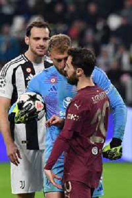 Torino 11.12.2024 Allianz Stadium ©Manuela Viganti/Agenzia Aldo Liverani Juventus vs Manchester City Uefa Champions League 2024/2025 6a giornata Nella foto: michele di gregorio e bernardo silva