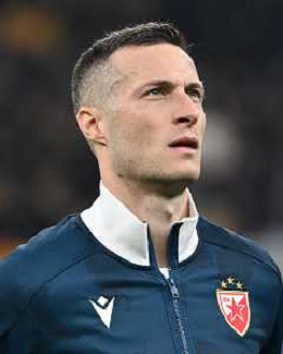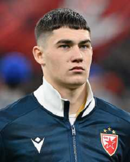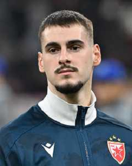 Milan vs Stella Rossa nella foto Andrija Maksimovic (Stella Rossa) Milano 11-12-2024 Stadio Giuseppe Meazza - San Siro UEFA Champions League fase a girone unico - 6a giornata foto Roberto Garavaglia/Agenzia Aldo Liverani sas