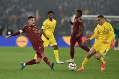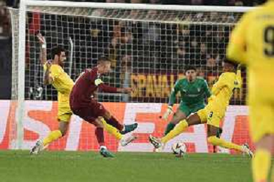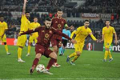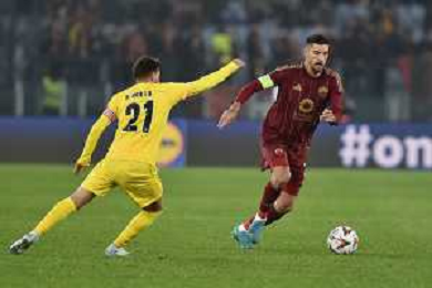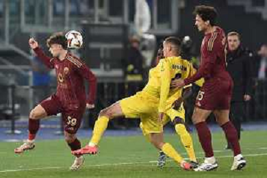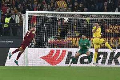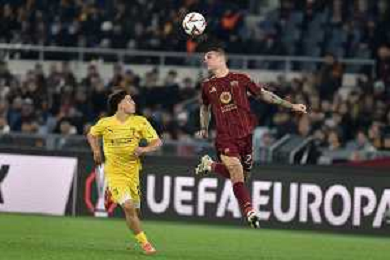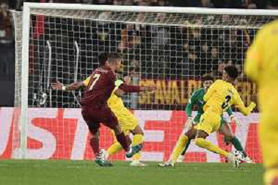Roma vs Sporting Braga Europa League - 6 giornata - Stadio Olimpico - Roma 12-12-2024 nella foto Traversa colpita da Pellegrini ©Federico Gaetano - AGENZIA ALDO LIVERANI SAS