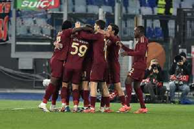 Roma vs Sporting Braga Europa League - 6 giornata - Stadio Olimpico - Roma 12-12-2024 nella foto Esultanza Roma dopo gol Saud ©Federico Gaetano - AGENZIA ALDO LIVERANI SAS