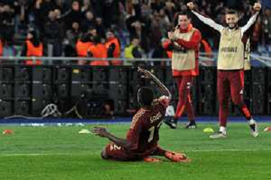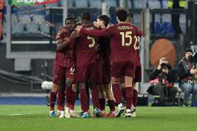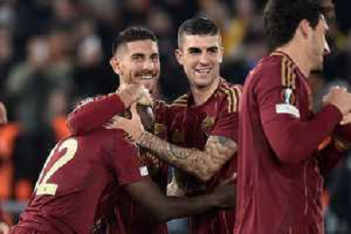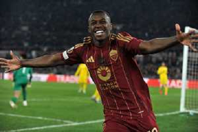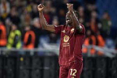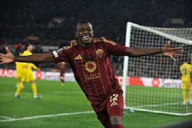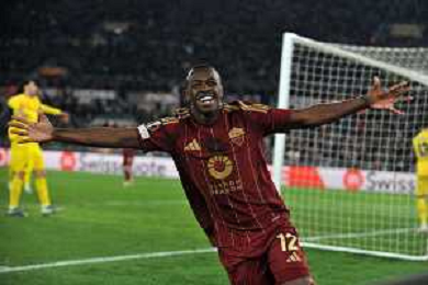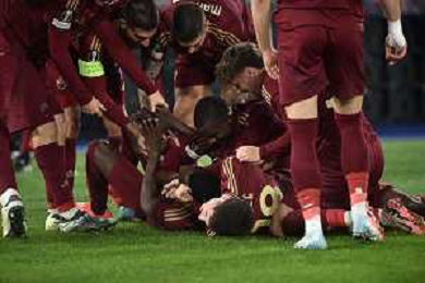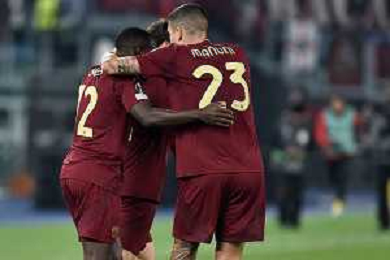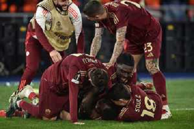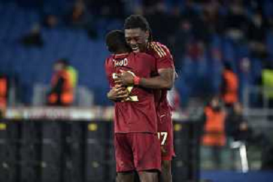 Roma vs Sporting Braga Europa League - 6 giornata - Stadio Olimpico - Roma 12-12-2024 nella foto Esultanza Saud e Kone’ ©Federico Gaetano - AGENZIA ALDO LIVERANI SAS