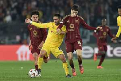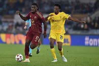 Roma vs Sporting Braga Europa League - 6 giornata - Stadio Olimpico - Roma 12-12-2024 nella foto Soule’ e El Ouazzani ©Federico Gaetano - AGENZIA ALDO LIVERANI SAS