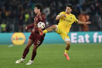 Roma vs Sporting Braga Europa League - 6 giornata - Stadio Olimpico - Roma 12-12-2024 nella foto Mancini e Gharbi ©Federico Gaetano - AGENZIA ALDO LIVERANI SAS