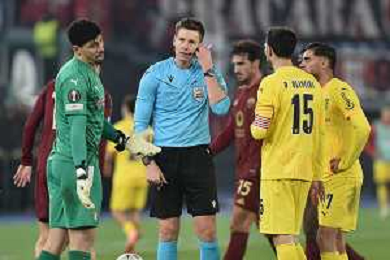 Roma vs Sporting Braga Europa League - 6 giornata - Stadio Olimpico - Roma 12-12-2024 nella foto arbitro Slebert espelle Magalhanes ©Federico Gaetano - AGENZIA ALDO LIVERANI SAS