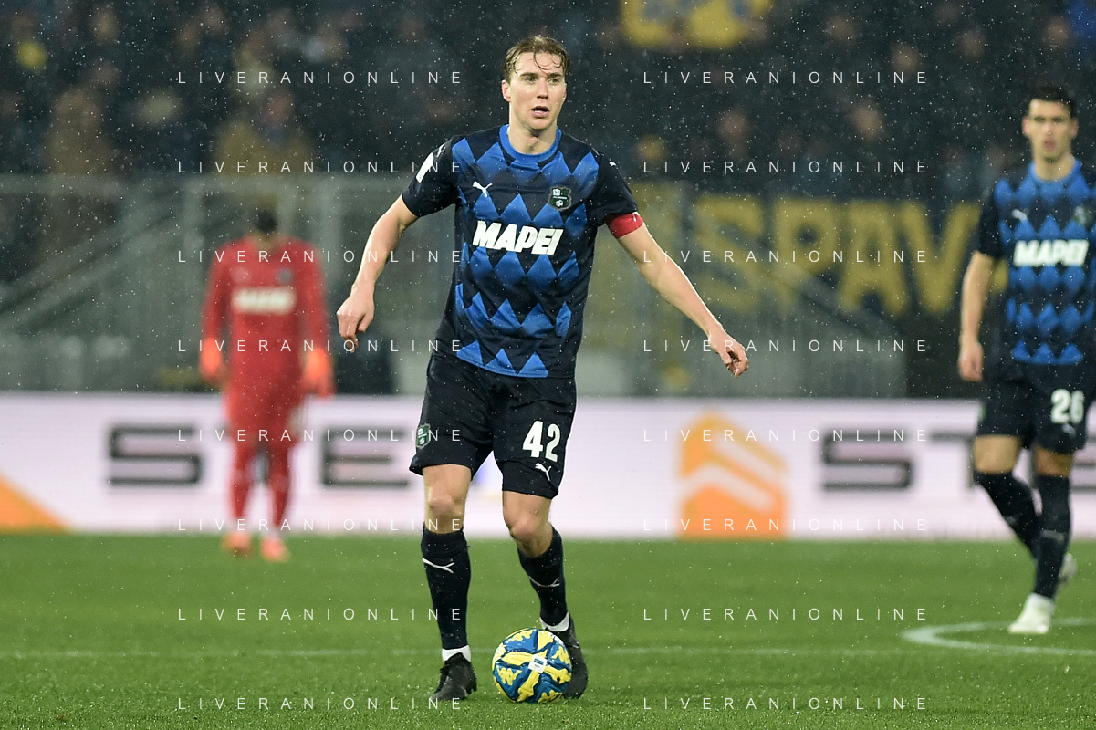 Frosinone vs Sassuolo Campionato Serie BKT - 17 Giornata Stadio B.Stirpe - Frosinone 14-12-2024 nella foto Tarik Muharemovic foto federico gaetamo-ag aldo liverani sas