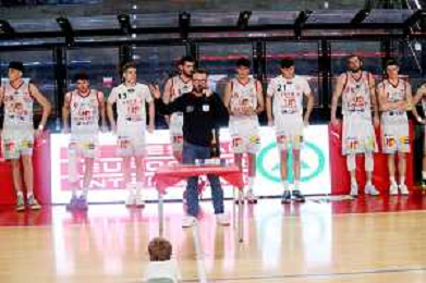 IMOLA 14 12 2024 UP ANDREA COSTA IMOLA-LEGNANO BASKET 59 70 SERIE B1 NELLA FOTO LUCA FAZZI AUGURA BUONE FESTE DOPO LA PARTITA FOTO GIANNI SANNA-AG ALDO LIVERANI SAS