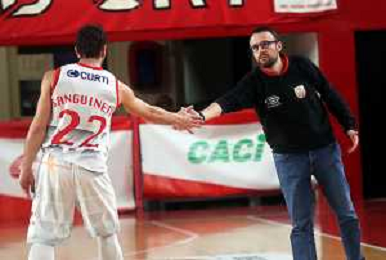 IMOLA 14 12 2024 UP ANDREA COSTA IMOLA-LEGNANO BASKET 59 70 SERIE B1 NELLA FOTO MATTEO ANGORI ALLENATORE UP ANDREA COSTA IMOLA DOPO LA PARTITA CON I GIOCATORI FA GLI AUGURI AI TIFOSI PER LE FESTE FOTO GIANNI SANNA-AG ALDO LIVERANI SAS