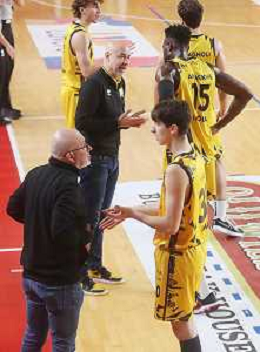 IMOLA 15 12 2024 NEUPHARMA VIRTUS IMOLA-PAFFONI FULGORBASKET OMEGNA SERIE B1 NELLA FOTO ALLENATORE DELLA VIRTUS IMOLA GIANLUIGI GALETTI CON TOMMASO PINZA FOTO GIANNI SANNA-AG ALDO LIVERANI SAS