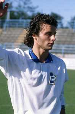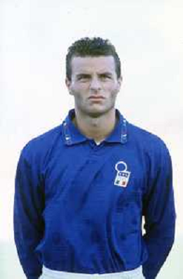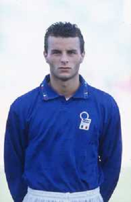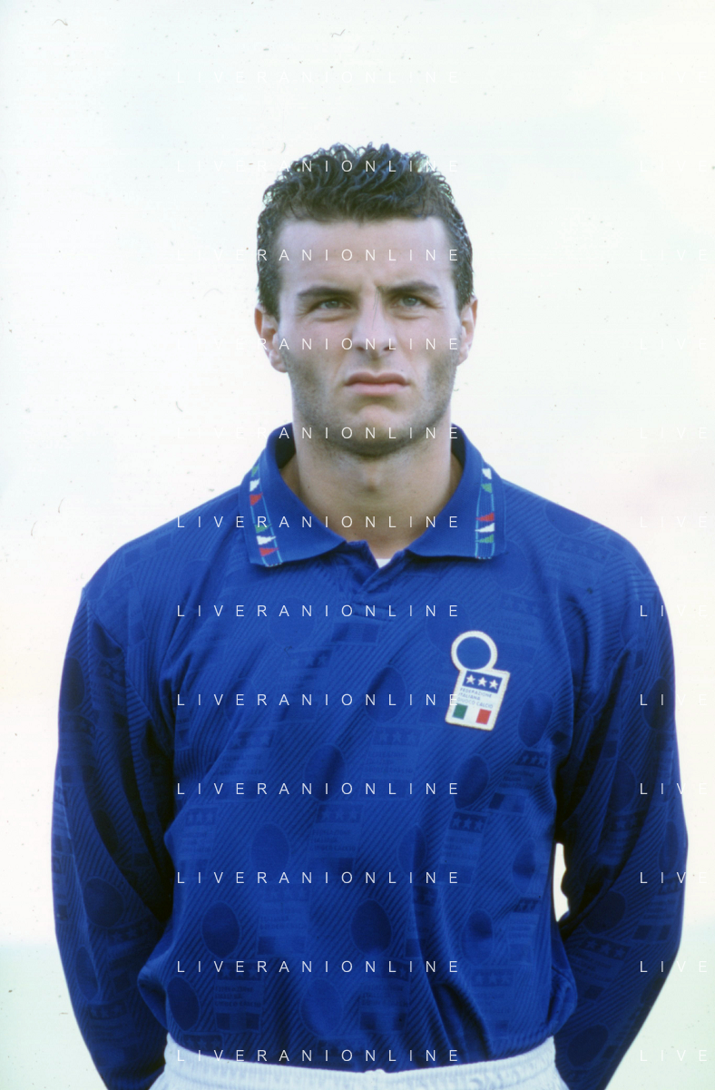 DIAP-RETROSPETTIVA FRANCESCO COLONNESE CALCIATORE NELLA FOTO FRANCESCO COLONNESE CON LA MAGLIA DELLA NAZIONALE ITALIANA NELL'ANNO 1993-1994 AG ALDO LIVERANI SAS
