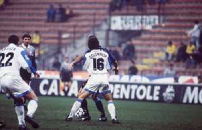 DIAP-RETROSPETTIVA FRANCESCO COLONNESE CALCIATORE NELLA FOTO FRANCESCO COLONNESE CON LA MAGLIA DELLA CREMONESE CALCIO NELL'ANNO 1992-1993 AG ALDO LIVERANI SAS