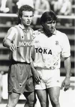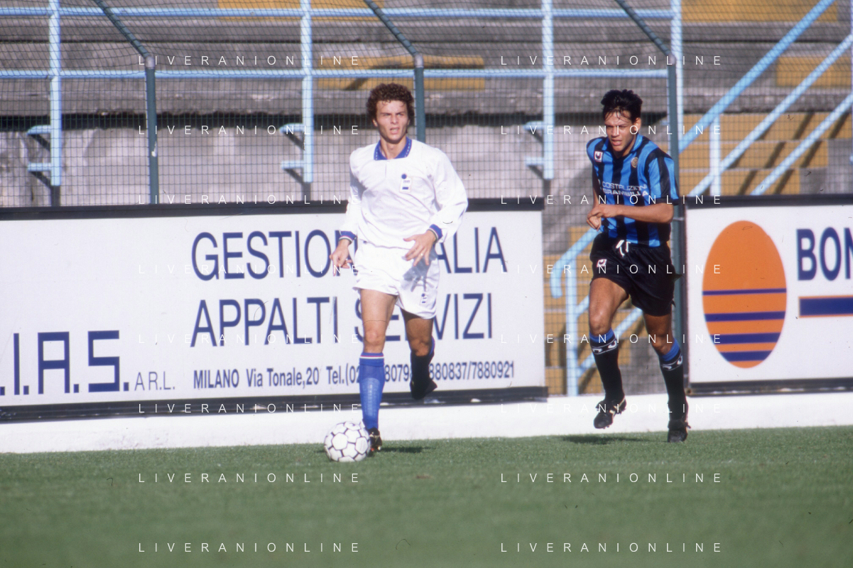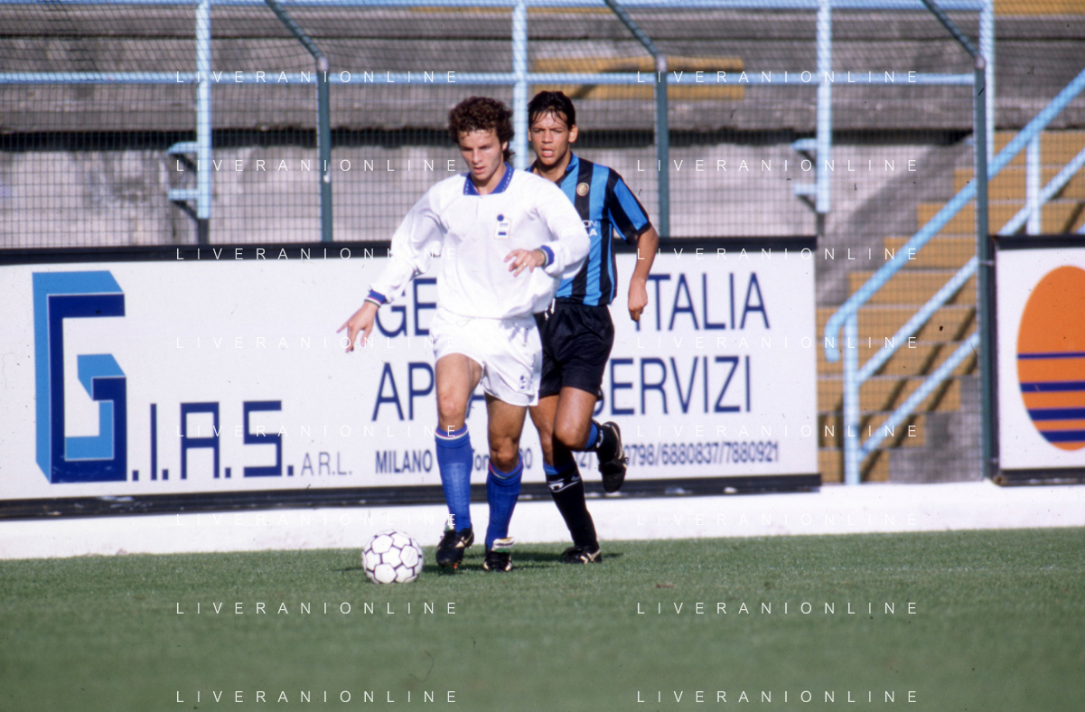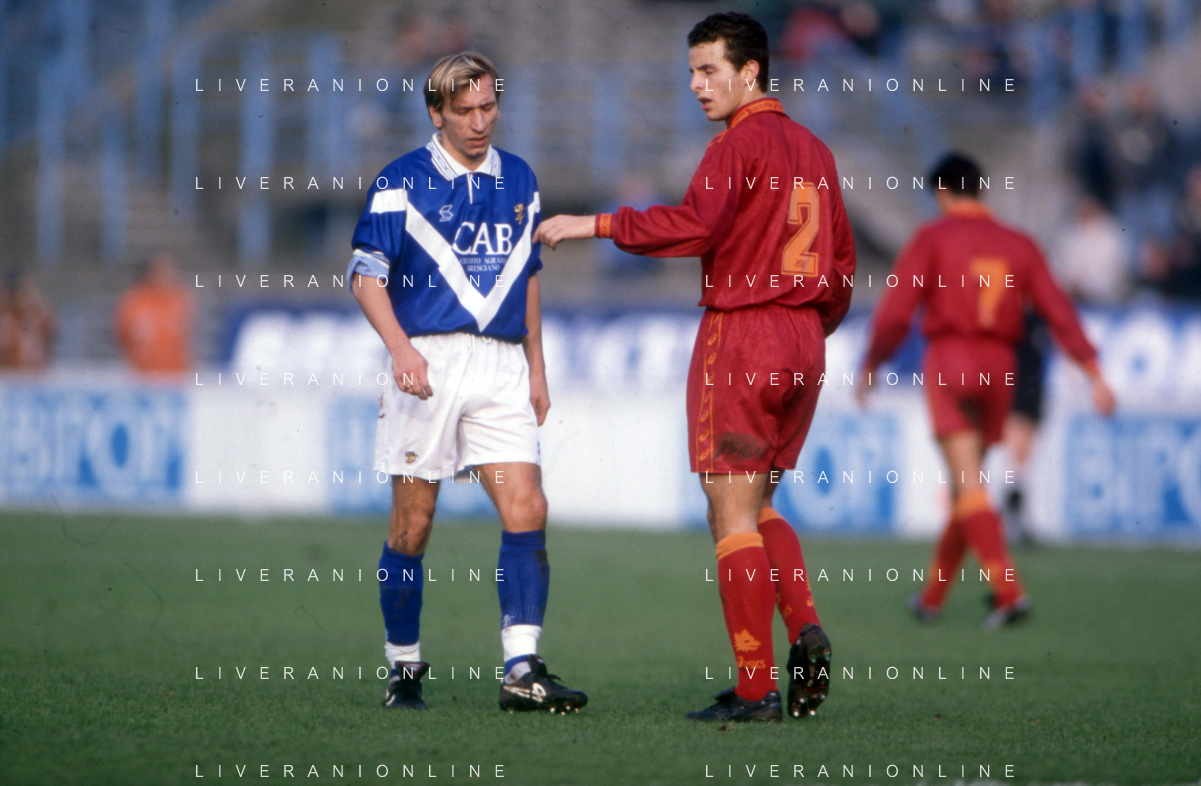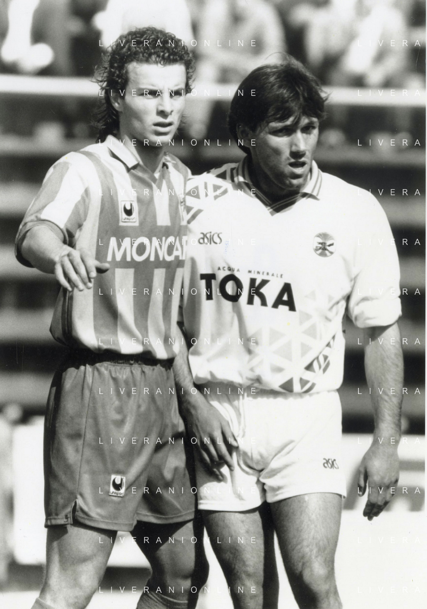 ST-RETROSPETTIVA FRANCESCO COLONNESE CALCIATORE NELLA FOTO FRANCESCO COLONNESE CON L MAGLIA DELLA CREMONESE CALCIO E PAOLO BALDIERI NELL'ANNO 1992-1993 AG ALDO LIVERANI SAS