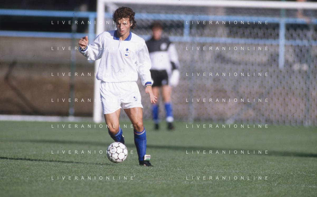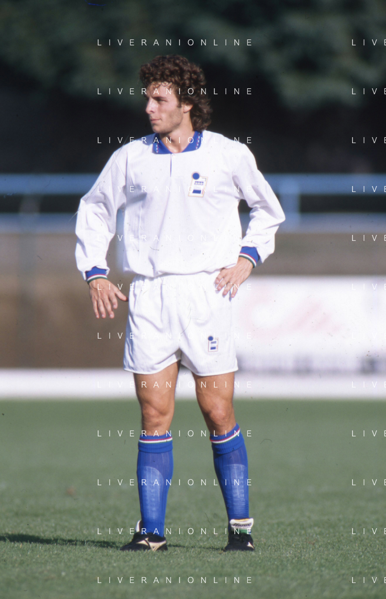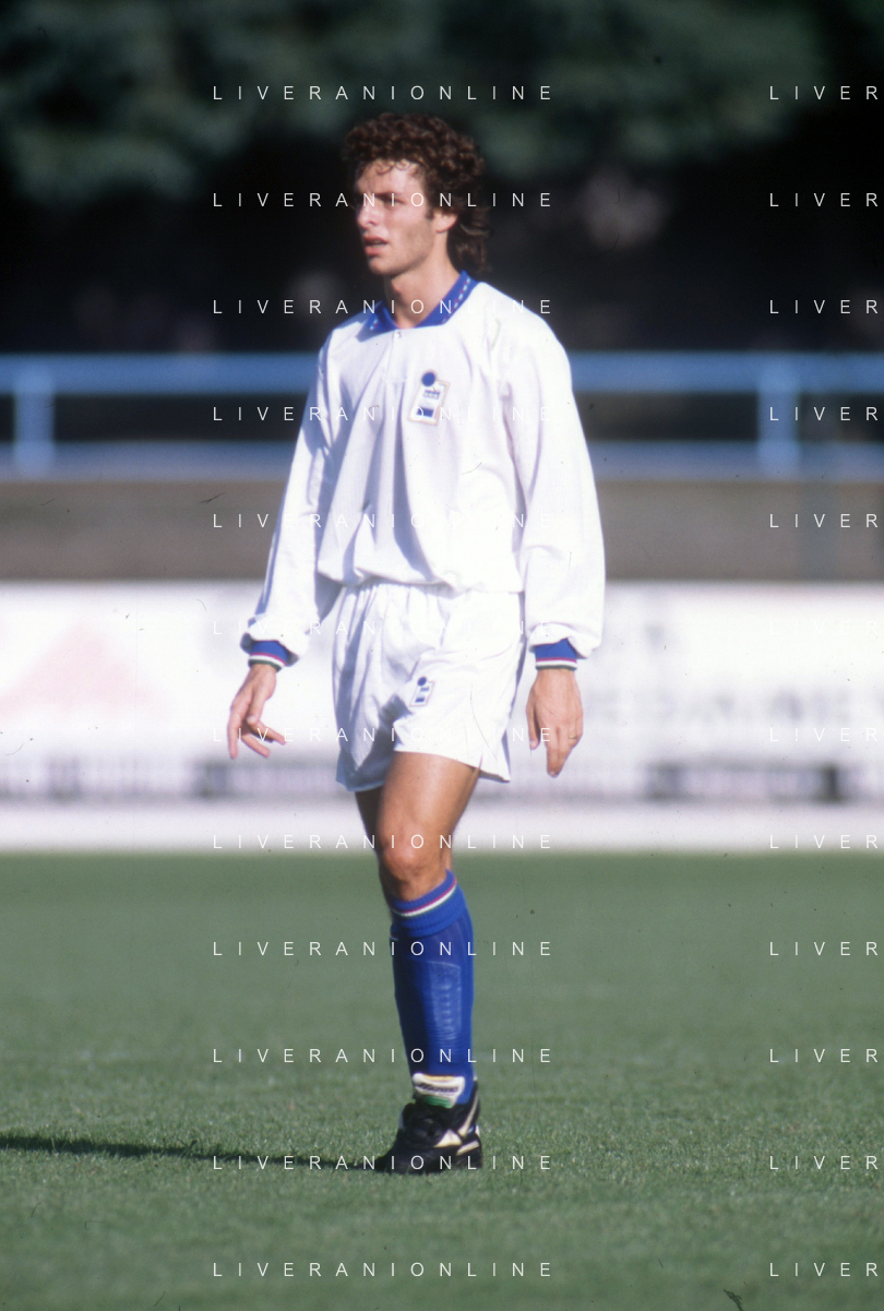 DIAP-RETROSPETTIVA FRANCESCO COLONNESE CALCIATORE NELLA FOTO FRANCESCO COLONNESE CON LA MAGLIA DELLA NAZIONALE ITALIANA NELL'ANNO 1992-1993 AG ALDO LIVERANI SAS