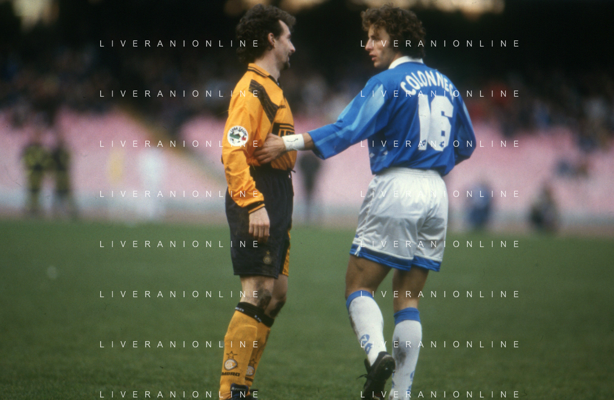 DIAP-RETROSPETTIVA FRANCESCO COLONNESE CALCIATORE NELLA FOTO FRANCESCO COLONNESE CON LA MAGLIA DEL NAPOLI CALCIO NELL'ANNO 1995-96 E MAURIZIO GANZ AG ALDO LIVERANI SAS