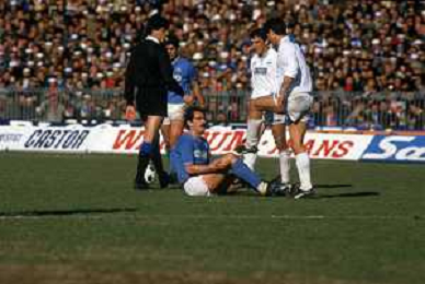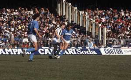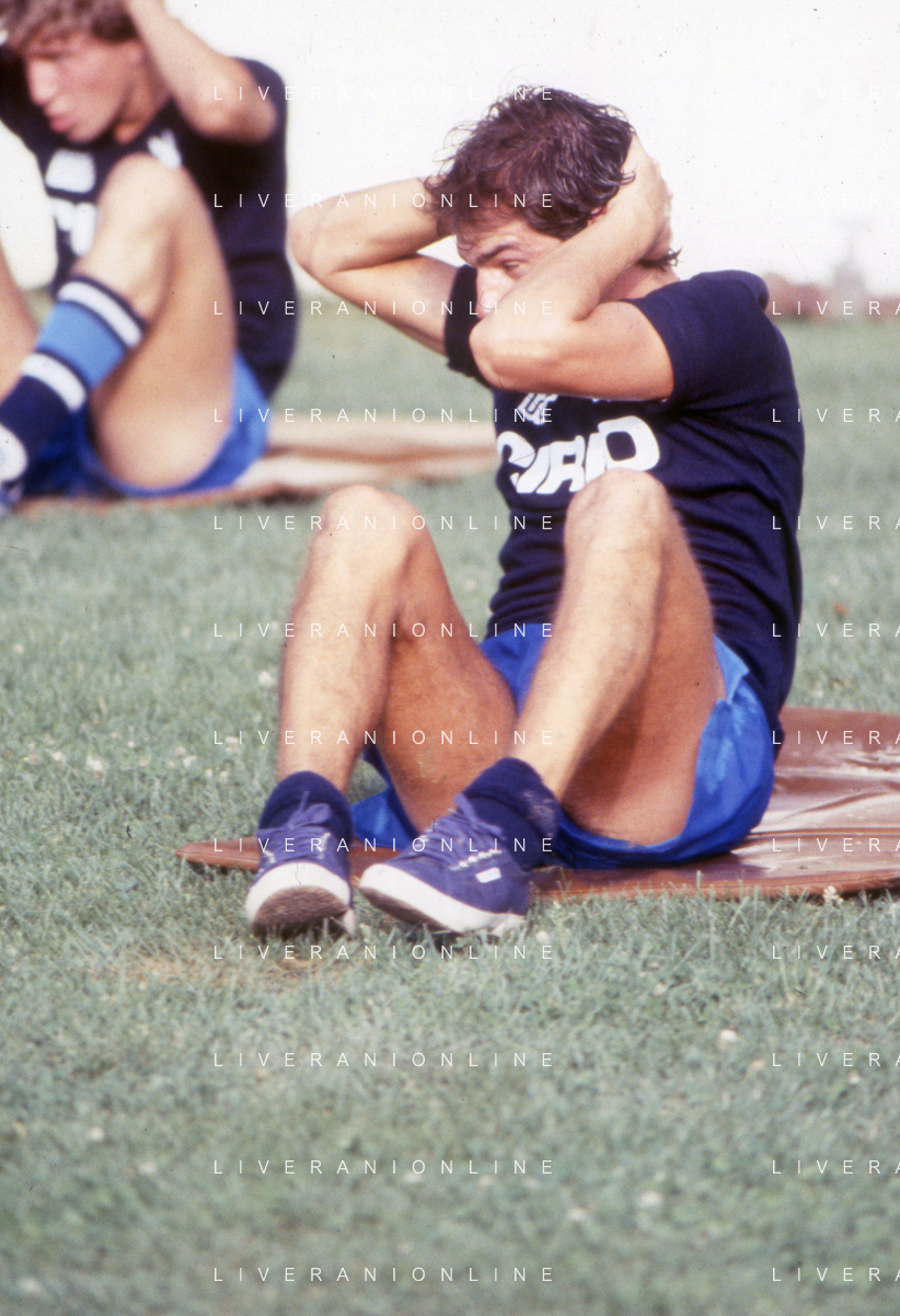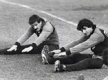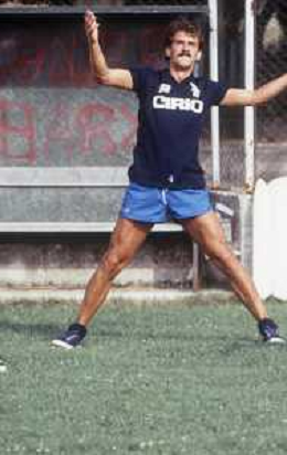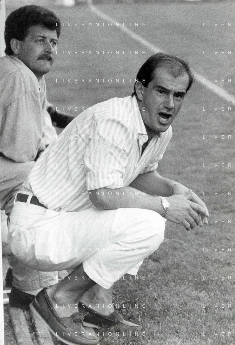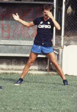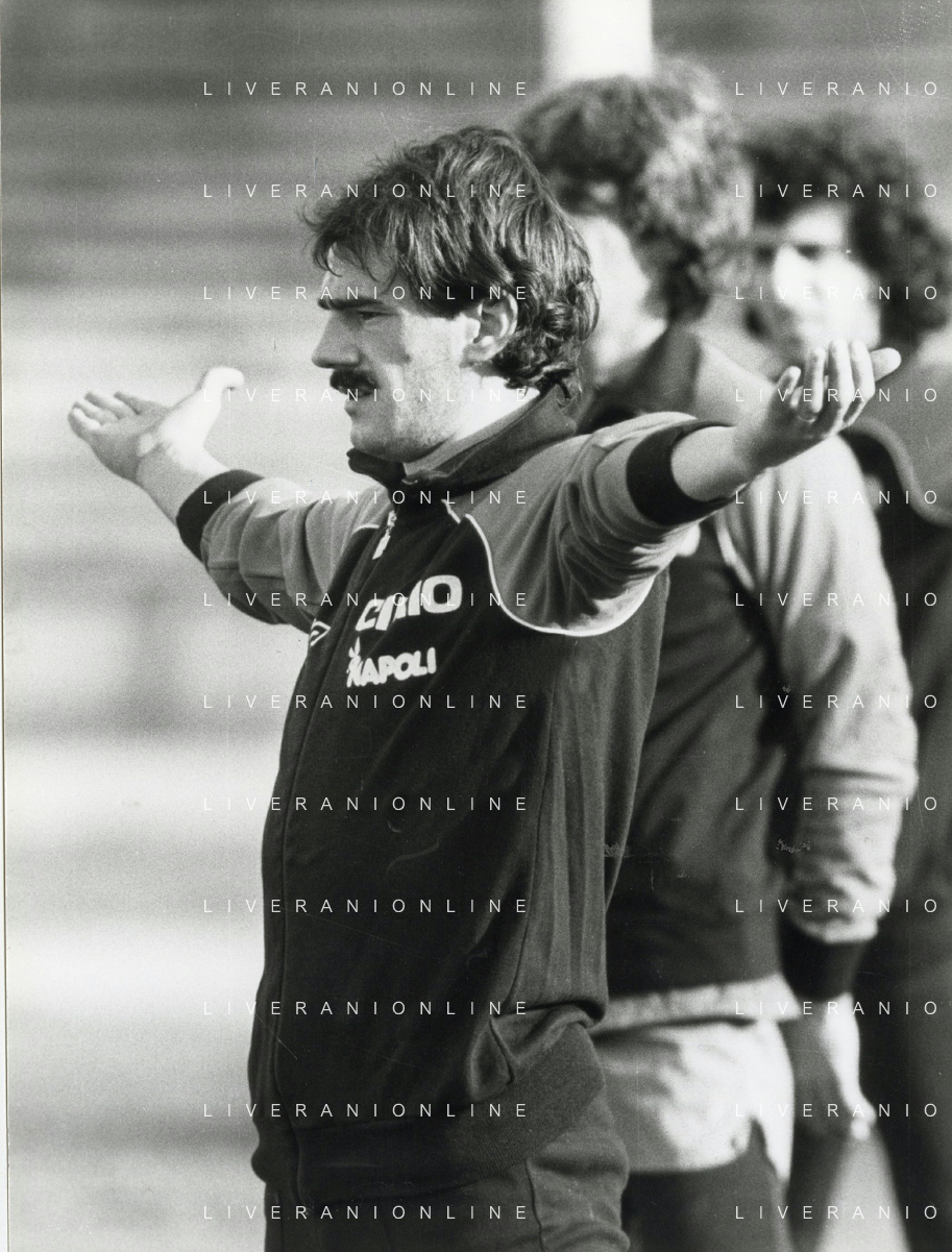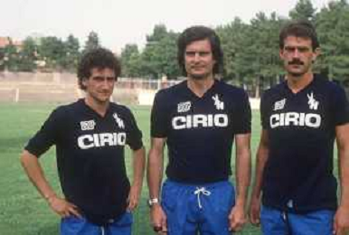 DIAP-RETROSPETTIVA PAOLO DAL FIUME CALCIATORE E ALLENATORE NELLA FOTO PAOLO DAL FIUME CON COSTANZO CELESTINI EL'ALLENATORE MASSIMO GIACOMINI AL NAPOLI CALCIO AG ALDO LIVERANI SAS