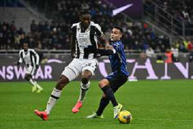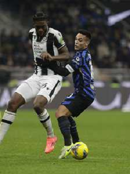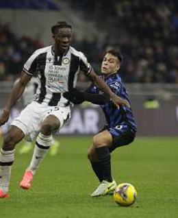 Inter vs Udinese nella foto James Abankwah (Udinese) e Lautaro Martinez (Inter) Milano 19-12-2024 Stadio Giuseppe Meazza - San Siro Coppa Italia Frecciarossa - ottavi di finale foto Roberto Garavaglia/Agenzia Aldo Liverani sas-AGENZIA ALDO LIVERANI SAS