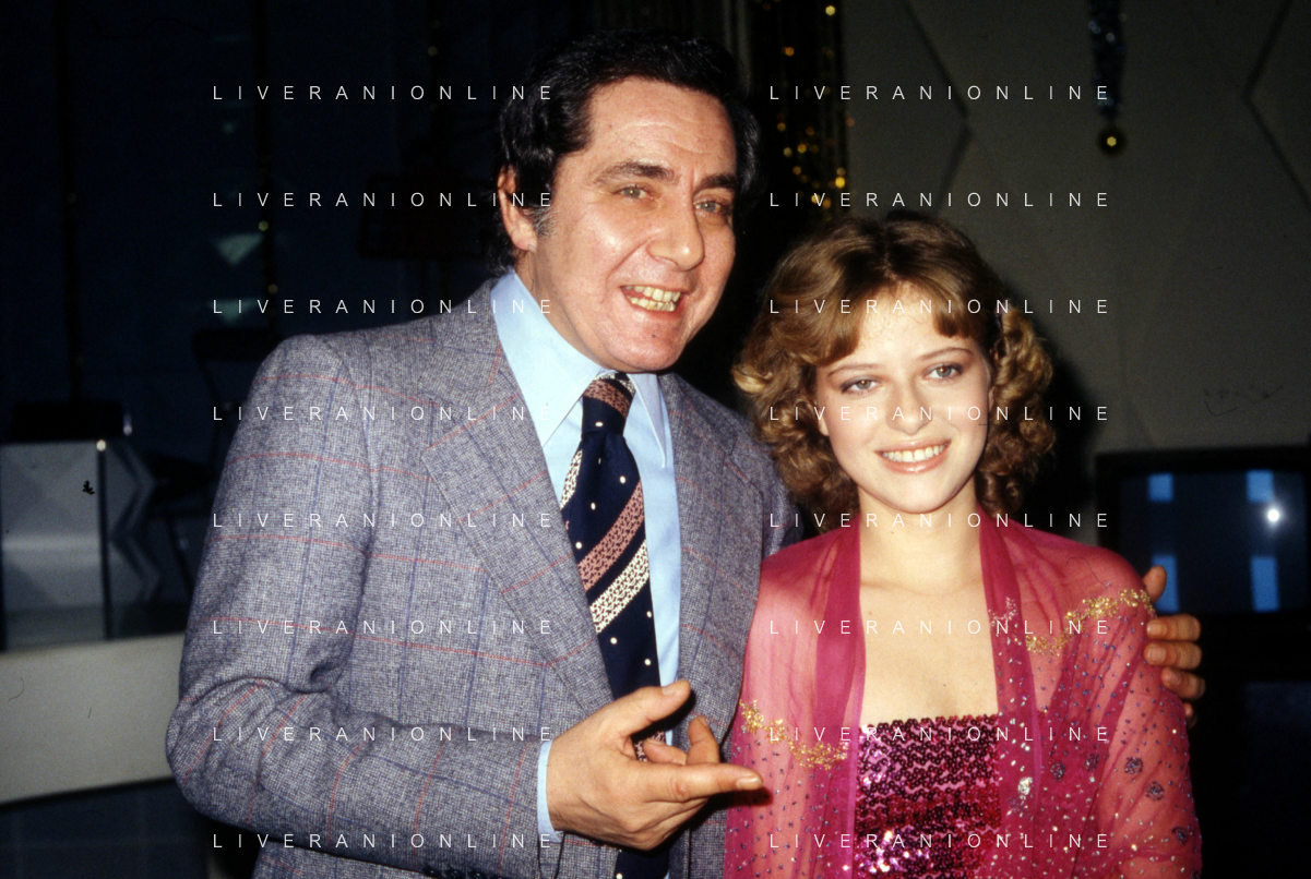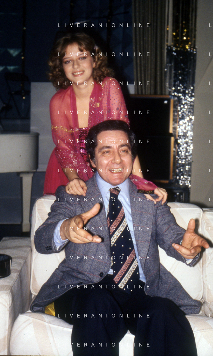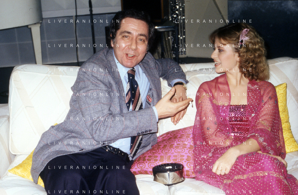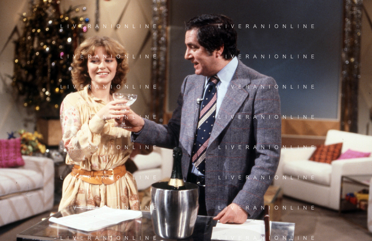 DIA-RETROSPETTIVA CORRADO MANTONI CONDUTTORE TELEVISIVO NELLA FOTO CORRADO MANTONI NELL’ANNO 1980 con MARINA PERZY AG ALDO LIVERANI SAS