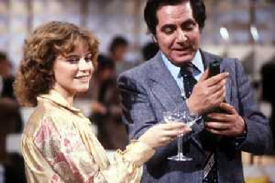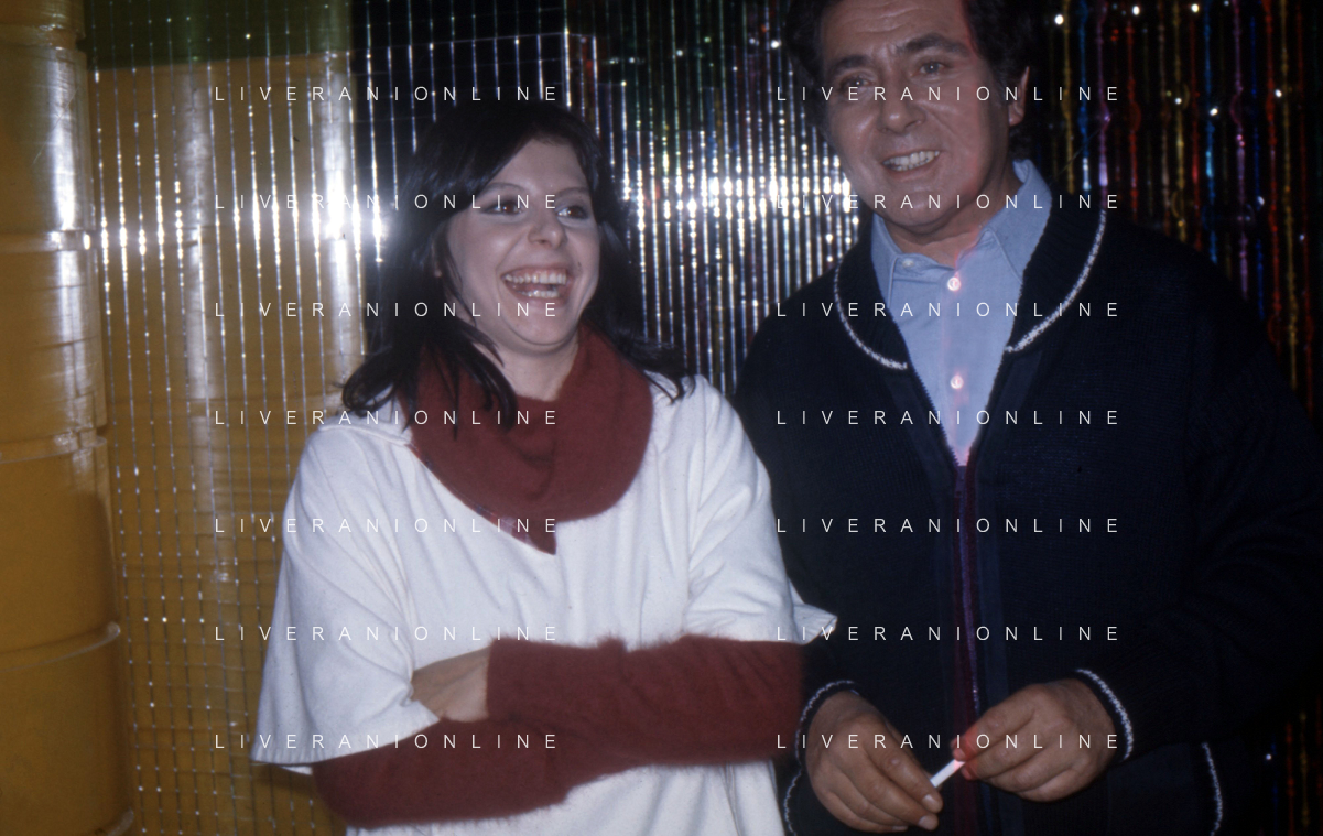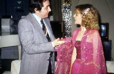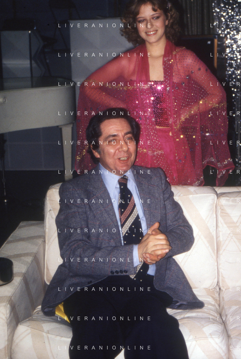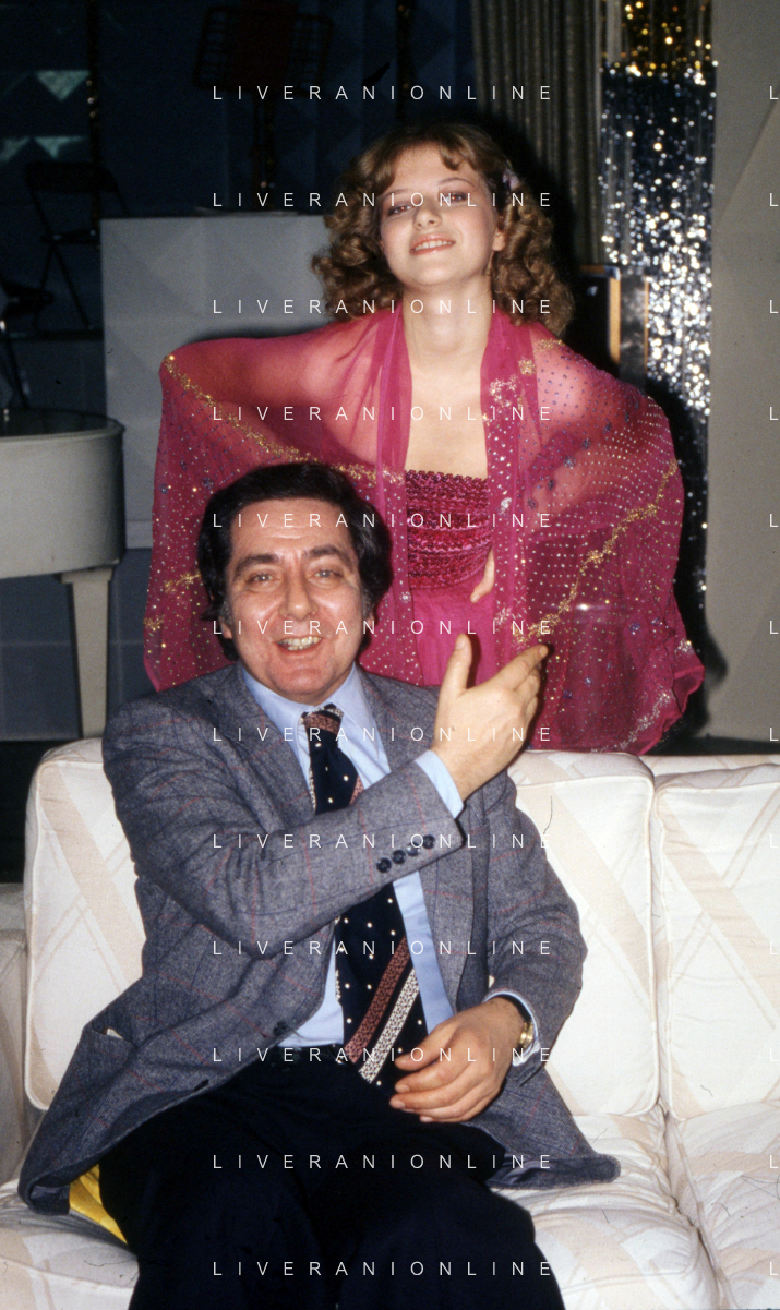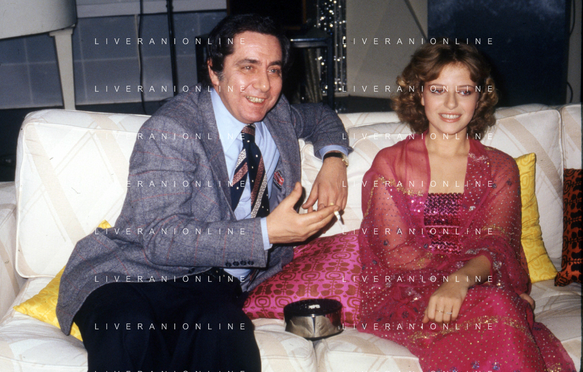 DIA-RETROSPETTIVA CORRADO MANTONI CONDUTTORE TELEVISIVO NELLA FOTO CORRADO MANTONI NELL’ANNO 1980 con MARINA PERZY AG ALDO LIVERANI SAS