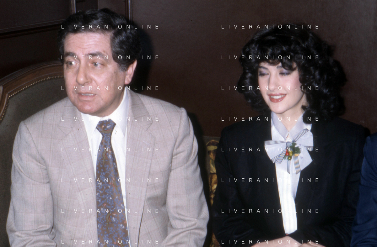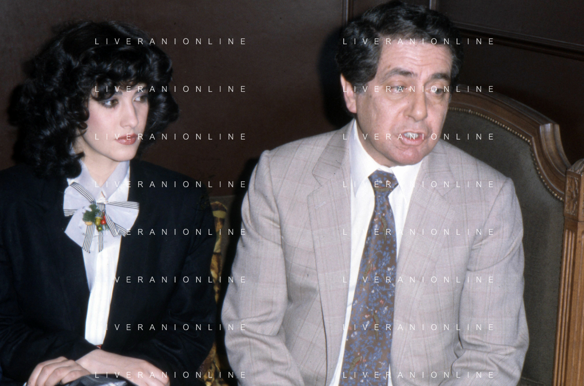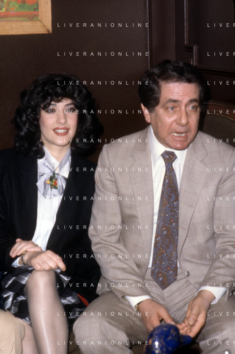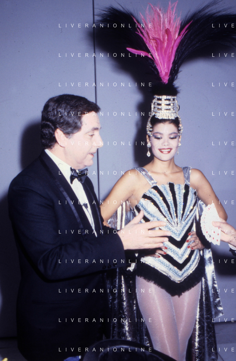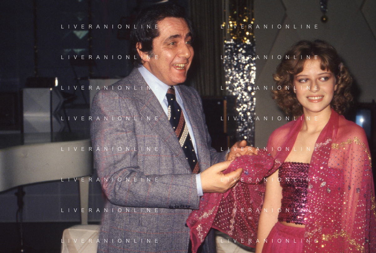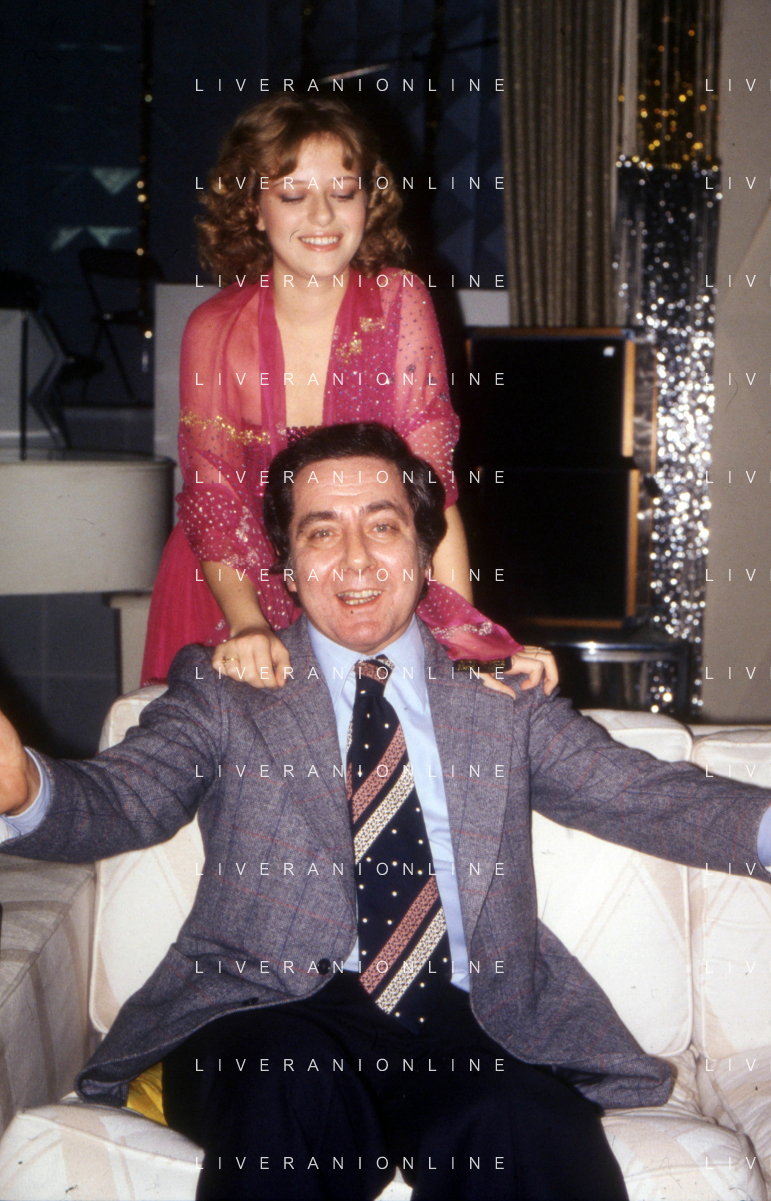 DIA-RETROSPETTIVA CORRADO MANTONI CONDUTTORE TELEVISIVO NELLA FOTO CORRADO MANTONI NELL’ANNO 1980 con PATRIZIA GIUGNO AG ALDO LIVERANI SAS