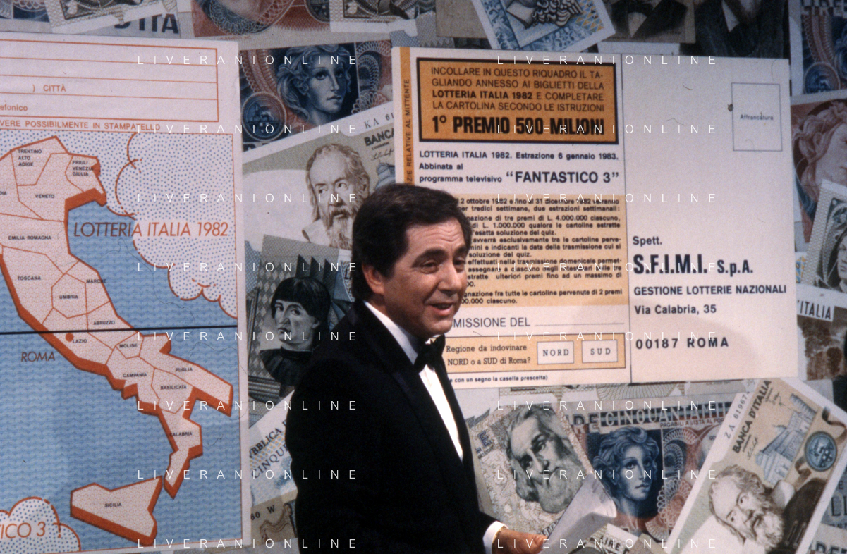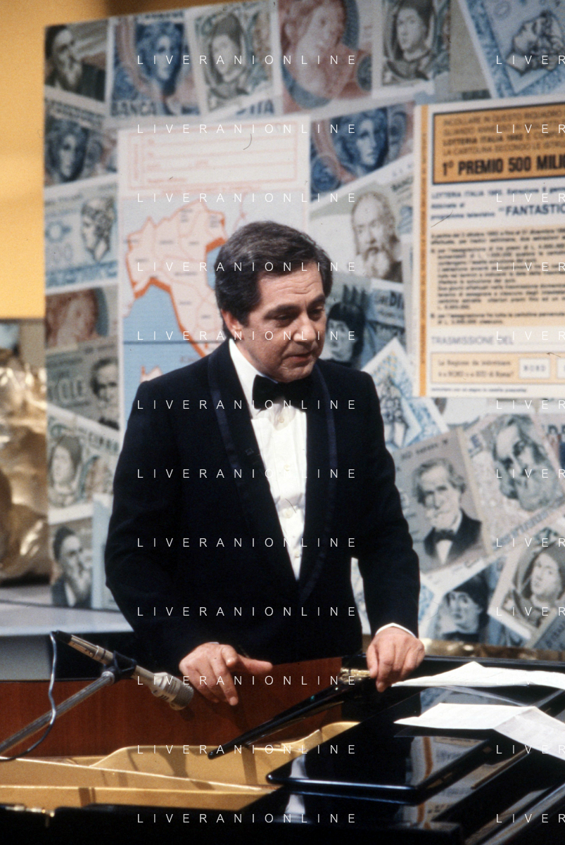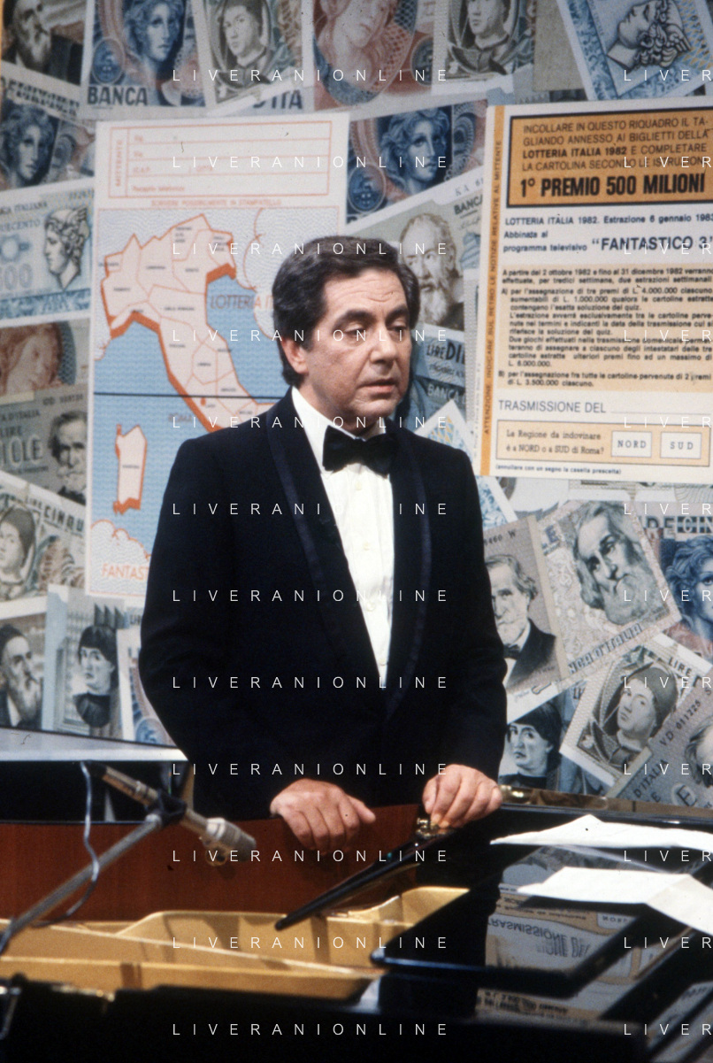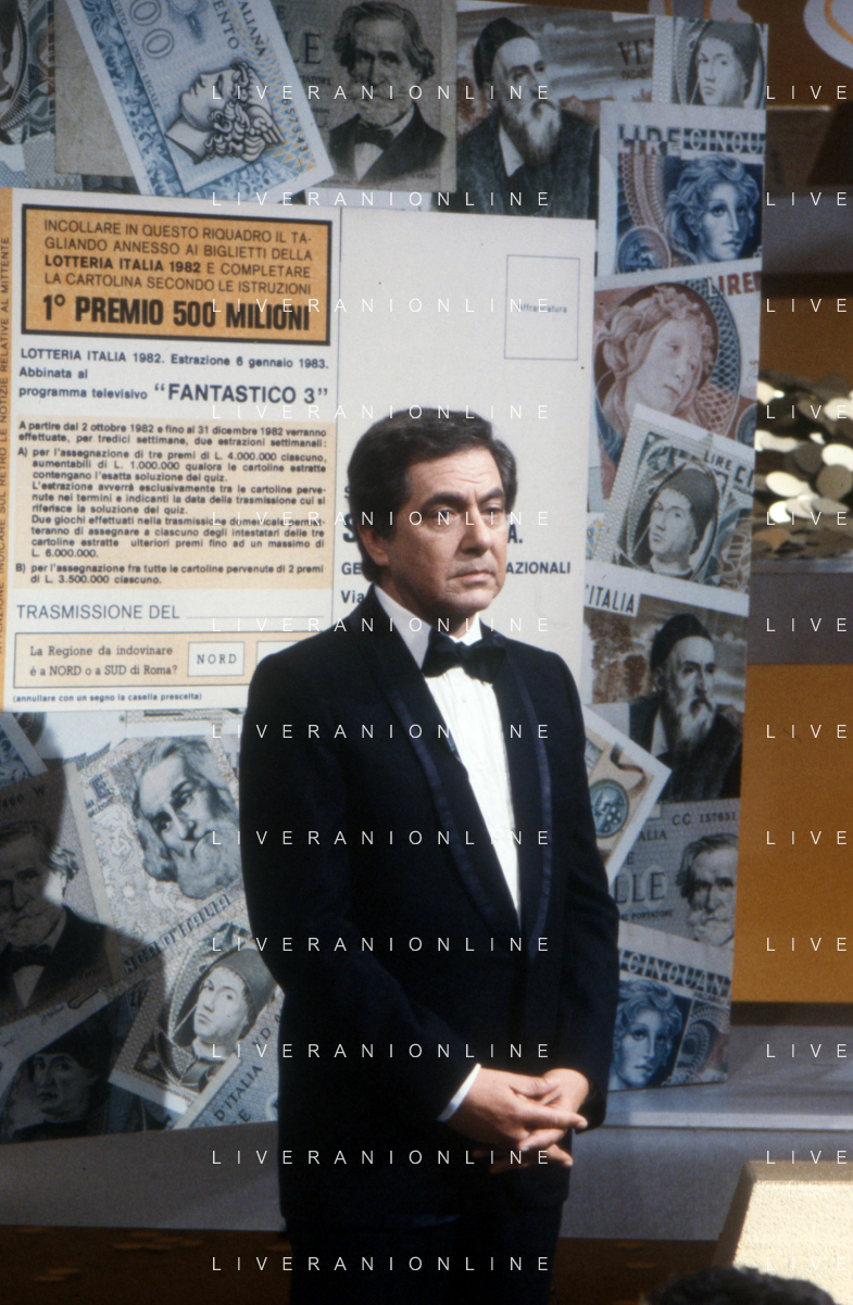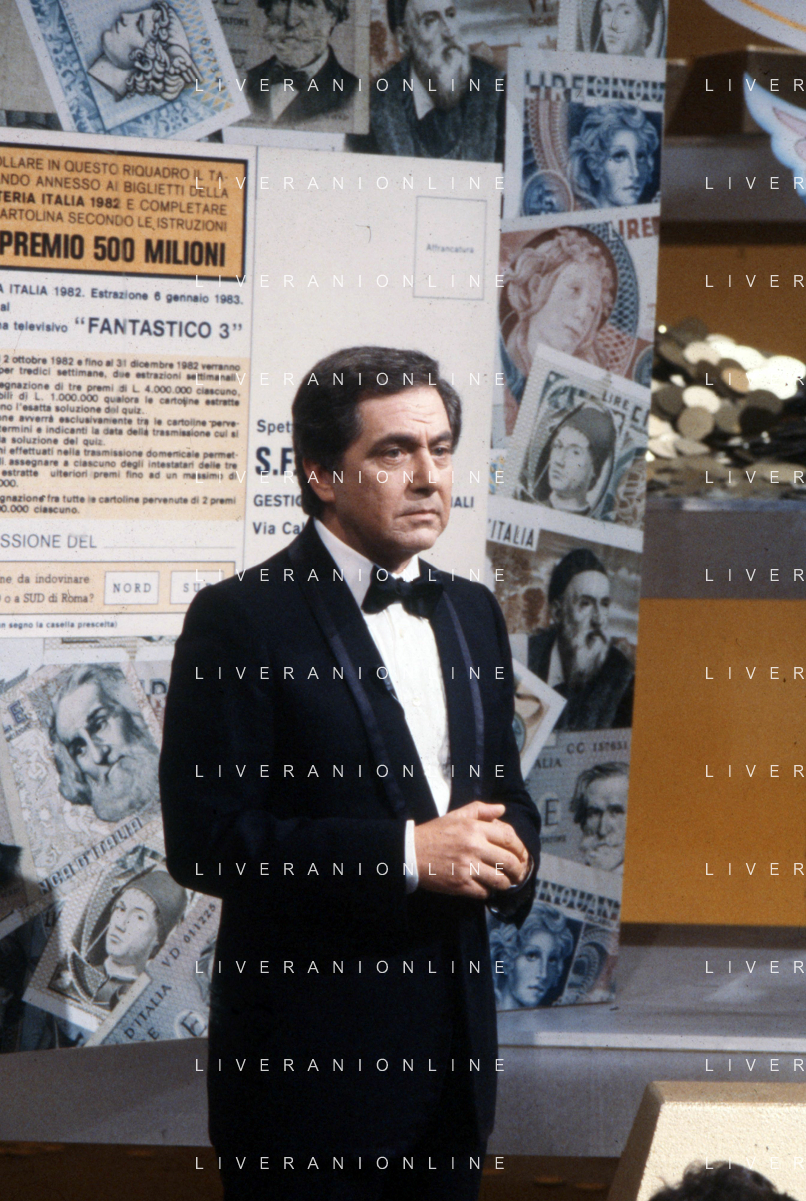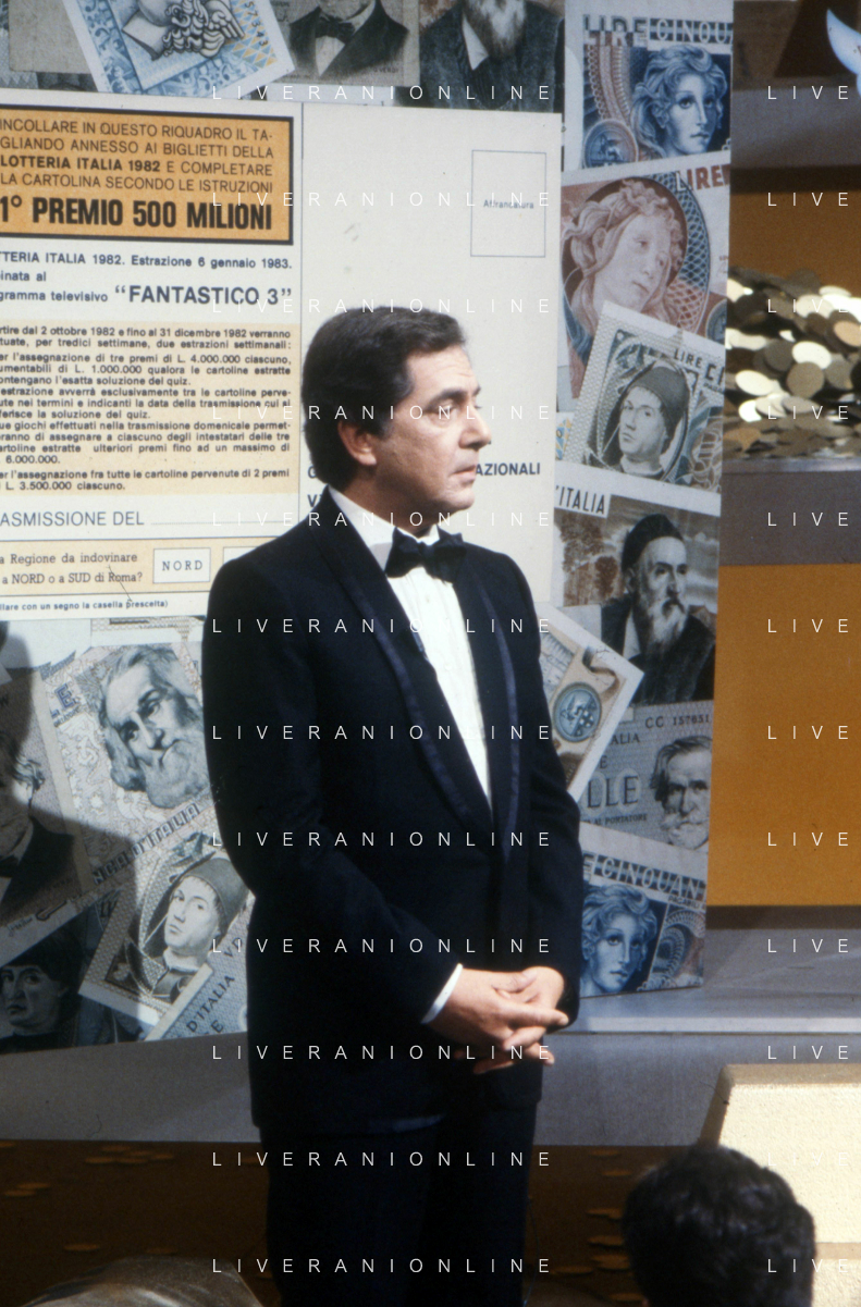 DIA-RETROSPETTIVA CORRADO MANTONI CONDUTTORE TELEVISIVO NELLA FOTO CORRADO MANTONI NELL’ANNO 1982 ALLA CONDUZIONE DI ‘FANTASTICO 3’ AG ALDO LIVERANI SAS