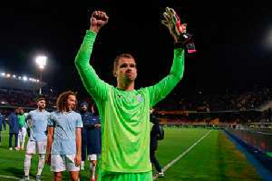 TVEM December 21, 2024 Lecce, Italy - US Lecce vs SS Lazio - Italian soccer serie A 2024/25 - Via Del Mare Stadium. In the pic: Ivan Provedel of SS Lazio celebrates the victory foto emmanuele mastrodonato-ag aldo liverani sas