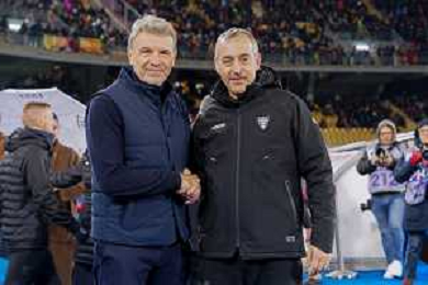 TVEM December 21, 2024 Lecce, Italy - US Lecce vs SS Lazio - Italian soccer serie A 2024/25 - Via Del Mare Stadium. In the pic: coach Marco Baroni of SS Lazio and coach Marco Giampaolo of US Lecce foto emmanuele mastrodonato-ag aldo liverani sas