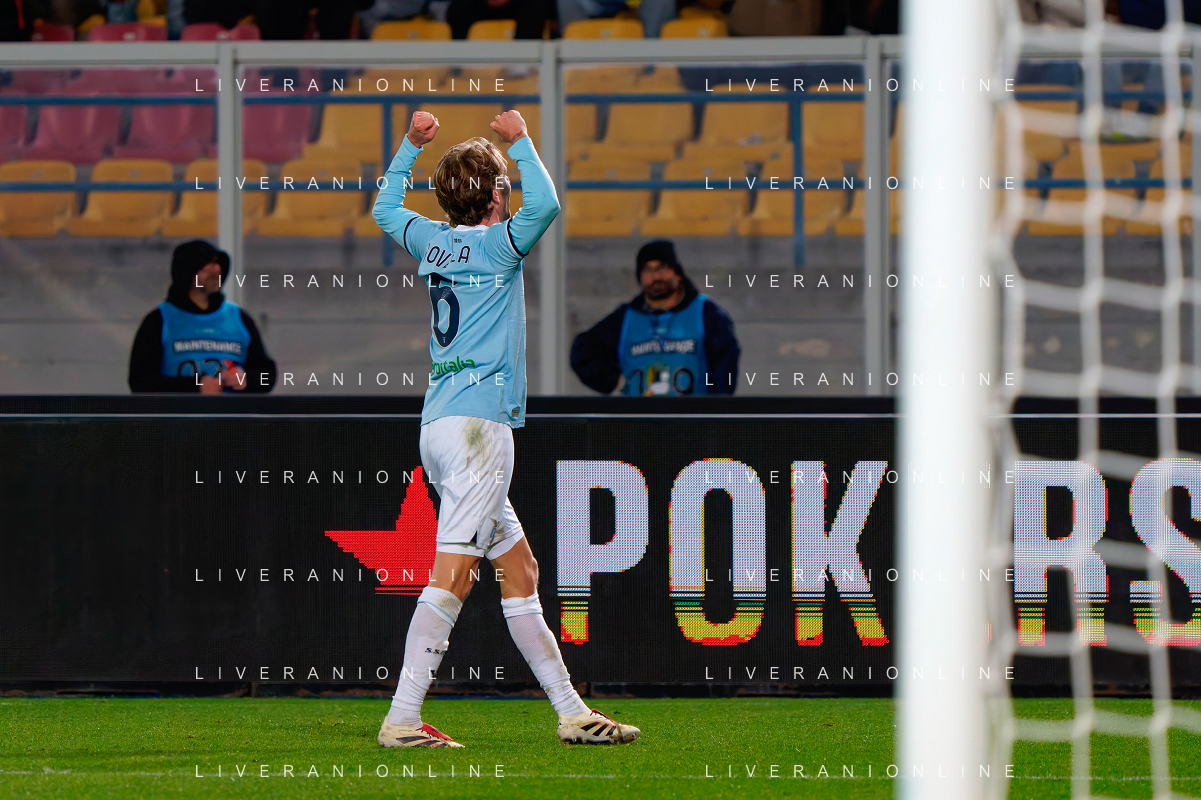 TVEM December 21, 2024 Lecce, Italy - US Lecce vs SS Lazio - Italian soccer serie A 2024/25 - Via Del Mare Stadium. In the pic: Nicolò Rovella of SS Lazio celebrates the victory foto emmanuele mastrodonato-ag aldo liverani sas