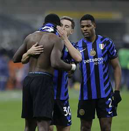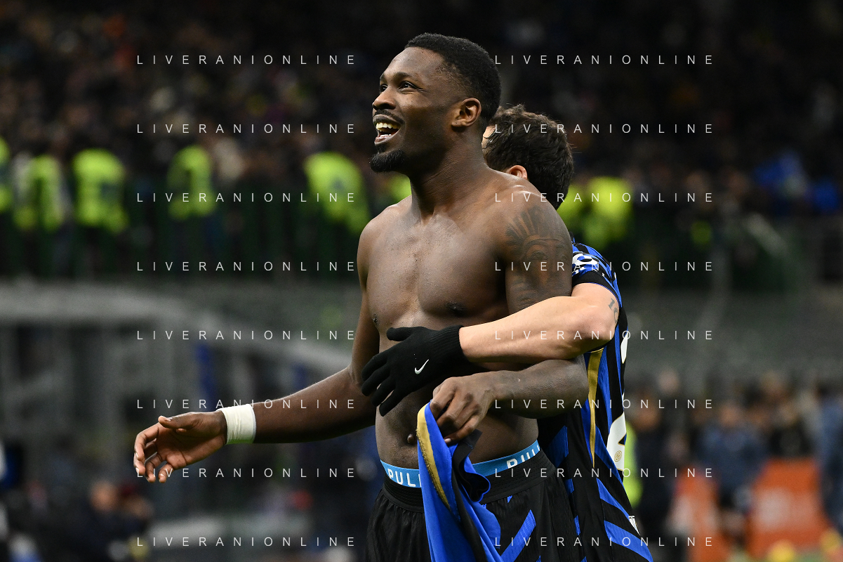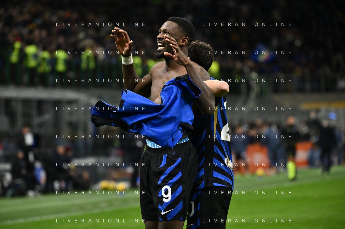 Inter vs Como nella foto Marcus Thuram (Inter) e Carlos Augusto (Inter) esultanza dopo il gol del 2 a 0 Milano 23-12-2024 Stadio Giuseppe Meazza - San Siro Campionato Serie A Enilive - 17a giornata foto Roberto Garavaglia/Agenzia Aldo Liverani sas-AGENZIA ALDO LIVERANI SAS