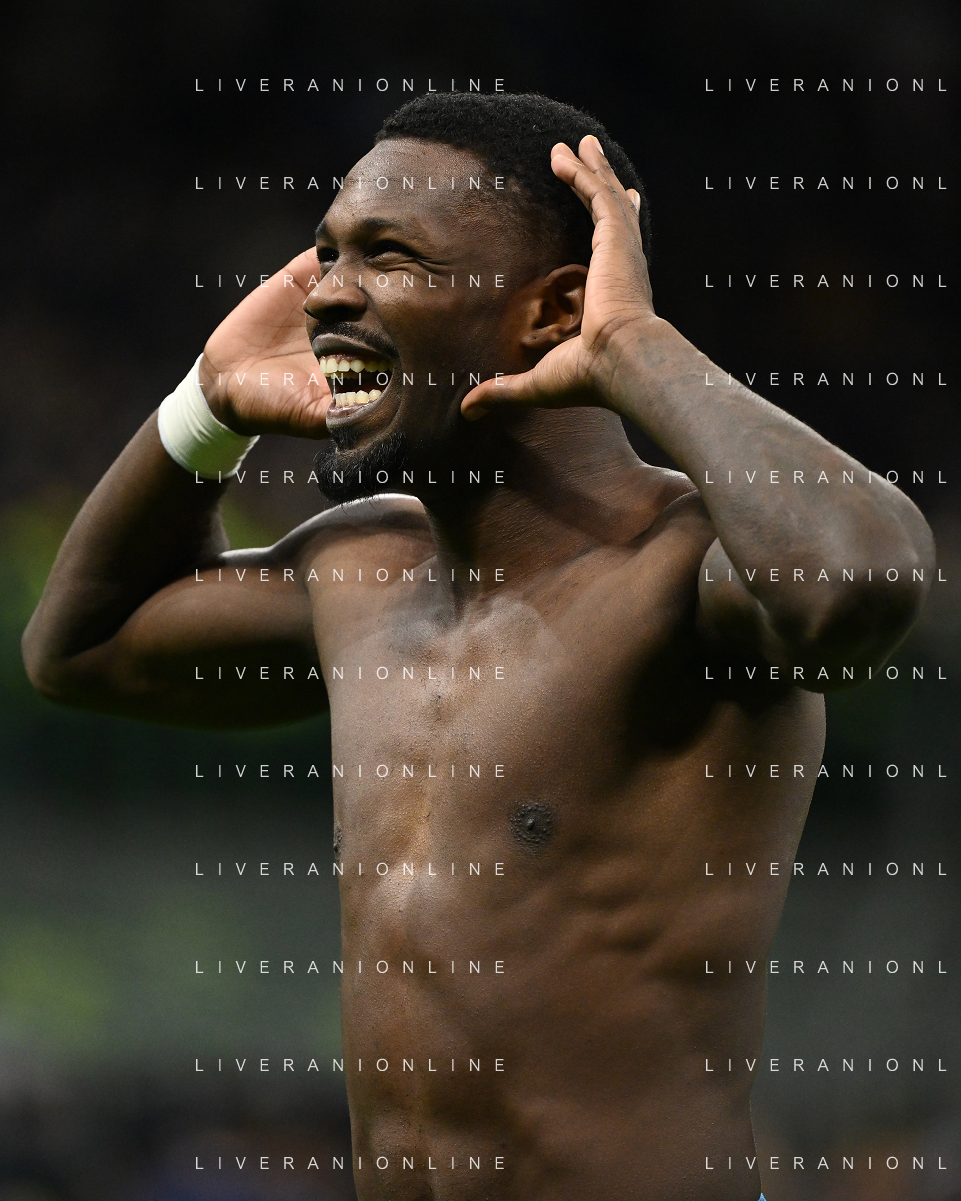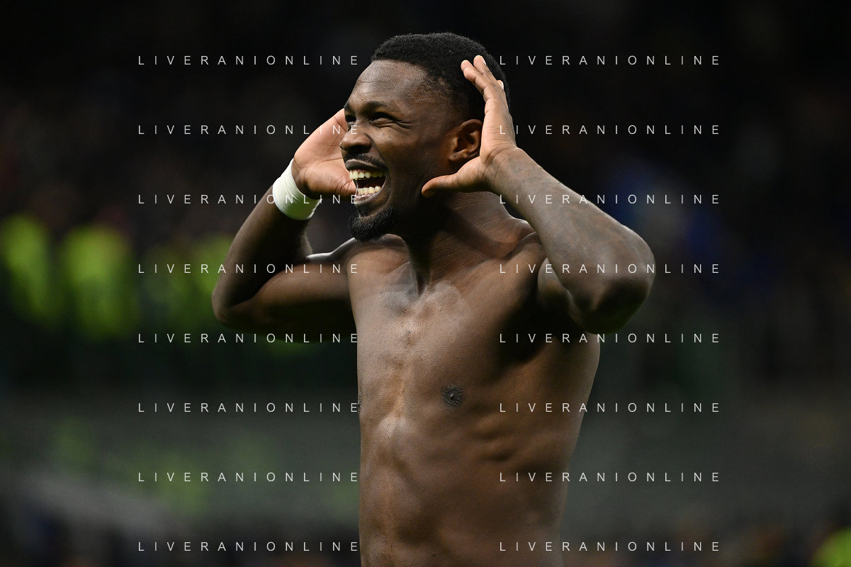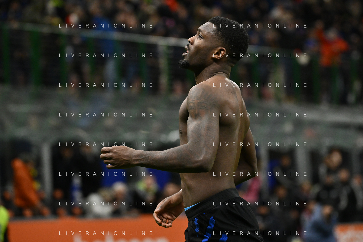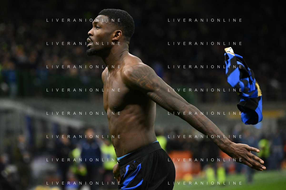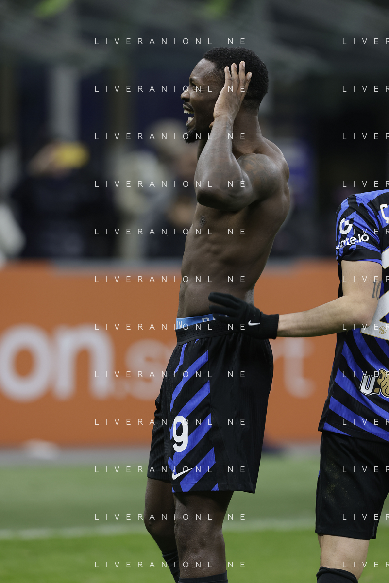 Inter vs Como nella foto Marcus Thuram (Inter) esultanza dopo il gol del 2 a 0 Milano 23-12-2024 Stadio Giuseppe Meazza - San Siro Campionato Serie A Enilive - 17a giornata foto Roberto Garavaglia/Agenzia Aldo Liverani sas-AGENZIA ALDO LIVERANI SAS