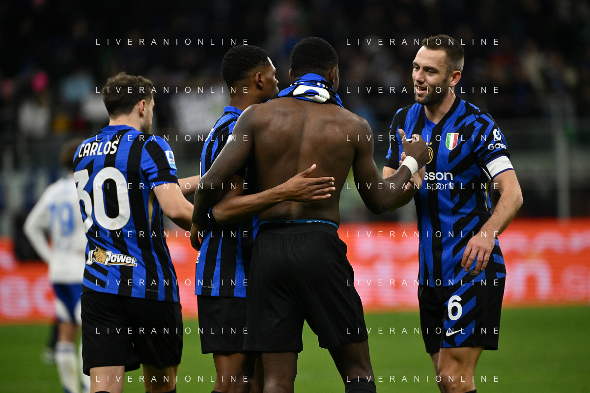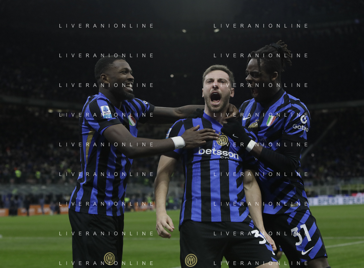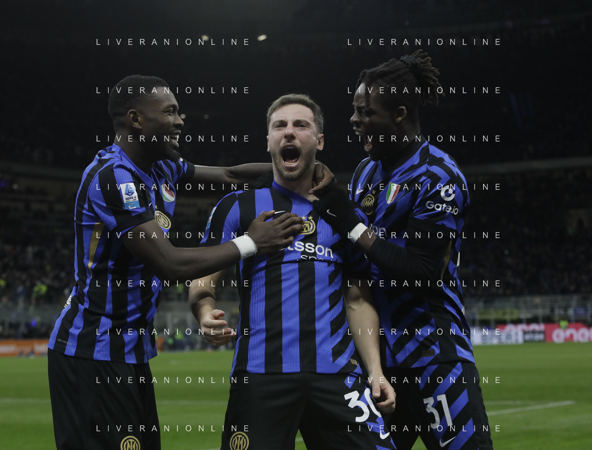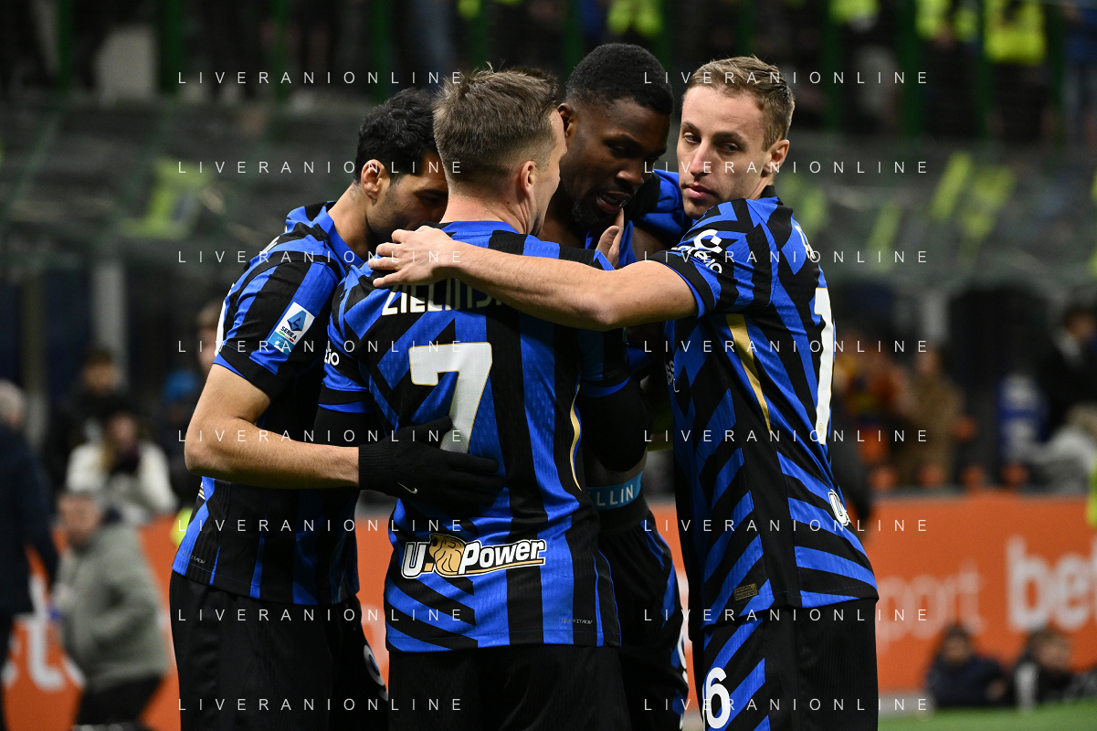 Inter vs Como nella foto Inter esultanza dopo il gol del 2 a 0 Milano 23-12-2024 Stadio Giuseppe Meazza - San Siro Campionato Serie A Enilive - 17a giornata foto Roberto Garavaglia/Agenzia Aldo Liverani sas-AGENZIA ALDO LIVERANI SAS