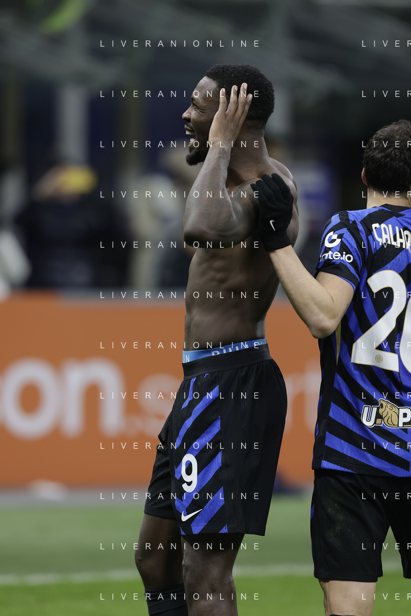 Inter vs Como nella foto Marcus Thuram (Inter) esultanza dopo il gol del 2 a 0 Milano 23-12-2024 Stadio Giuseppe Meazza - San Siro Campionato Serie A Enilive - 17a giornata foto Roberto Garavaglia/Agenzia Aldo Liverani sas