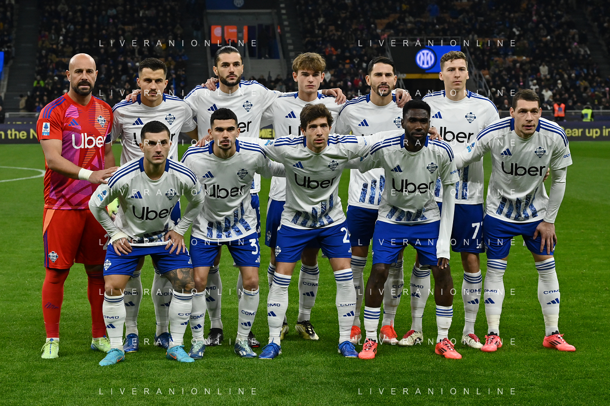 Inter vs Como nella foto formazione Como, in piedi da SX Josè Manuel Pepe Reina, Marc Oliver Kempf, Alberto Dossena, Nicolas Paz Martinez, Edoardo Goldaniga e Ignace Van der Brempt; in basso da SX Gabriel Strefezza, Lucas Da Cunha, Sergi Roberto Carnicer, Alieu Fadera e Andrea Belotti Milano 23-12-2024 Stadio Giuseppe Meazza - San Siro Campionato Serie A Enilive - 17a giornata foto Roberto Garavaglia/Agenzia Aldo Liverani sas